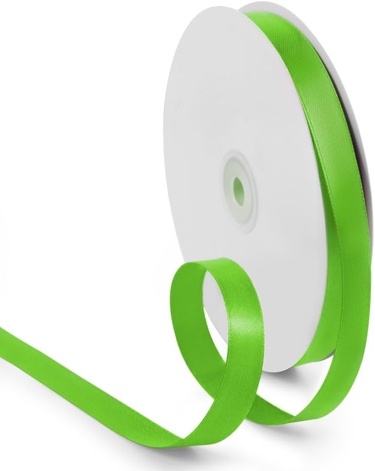 - 【High Quality】: Our fabric satin ribbon is made of 100% high-quality polyester. The single face ribbon for gift wrapping is Apple Green color and has smooth texture which is easy to cut and use.