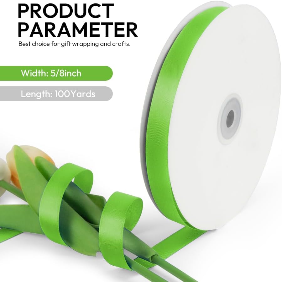 - 【Ribbon Dimensions】: Each satin ribbon spool is 5/8 inch width with total length is 100 yards, which has enough amount for your daily need. The gift wrapping ribbon can be easily stored and the spool is space-saving.