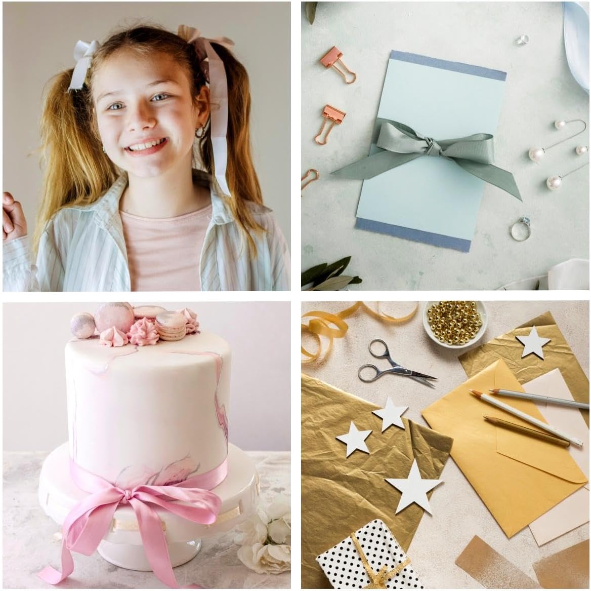 - 【Ribbon for Crafts】: The wrapping ribbon with nice stitched edges looks luxurious and is suitable for gift wrapping, packages, presents, crafts making, tying bows, hair, sewing, floral wreath and bouquet, invitation or thank you cards, DIY projects, graduation lei. You can use the beautiful ribbon to create floral wreaths and bows to highlight your items and add an exquisite touch.