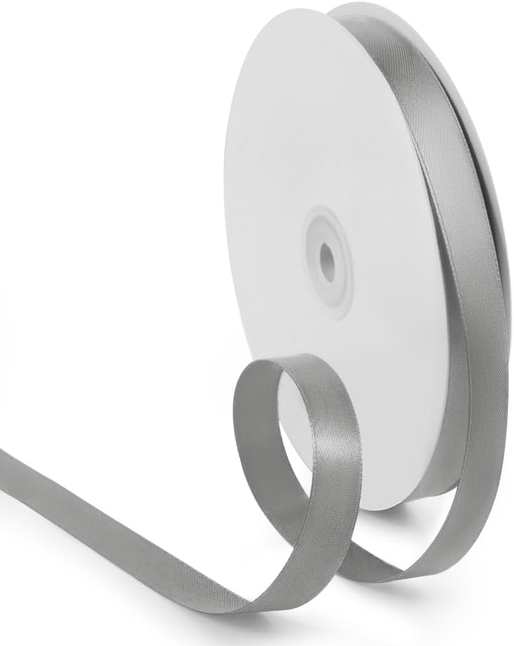 - 【High Quality】: Our fabric satin ribbon is made of 100% high-quality polyester. The single face ribbon for gift wrapping is Silver(Grey) color and has smooth texture which is easy to cut and use.