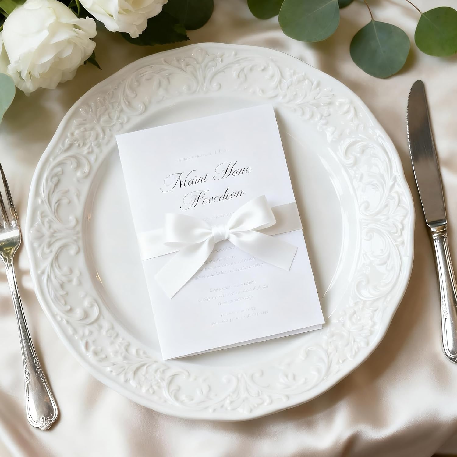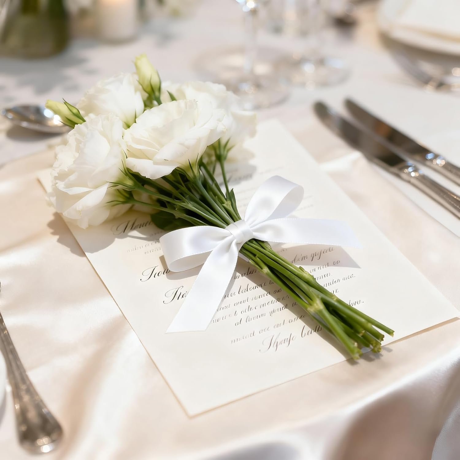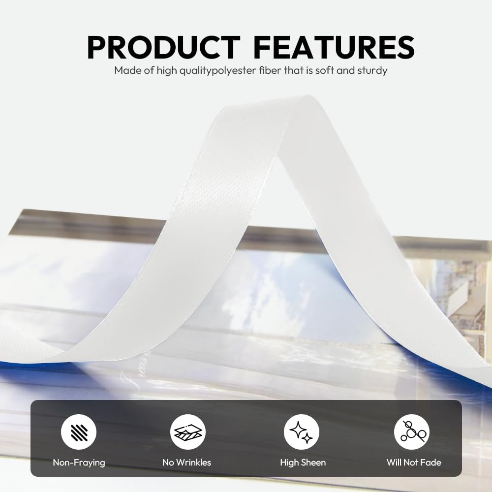 5/8 Inch 100 Yards White Ribbon, Fabric White Stain Ribbon for Gift Wrapping, Wedding and Birthday Party Decoration, Valentine's Day, Craft, Flower Bouquet, Sewing