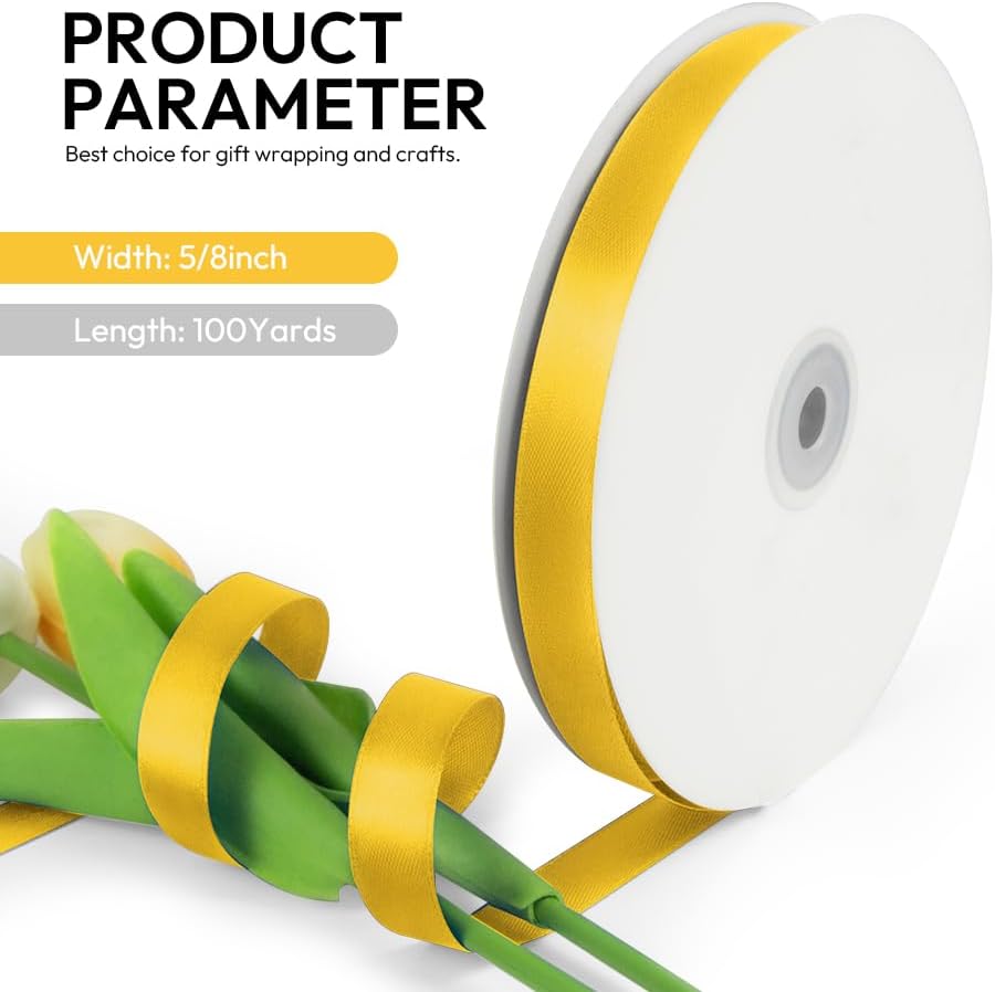 - 【High Quality】: Our fabric satin ribbon is made of 100% high-quality polyester. The single face ribbon for gift wrapping is Yellow color and has smooth texture which is easy to cut and use.