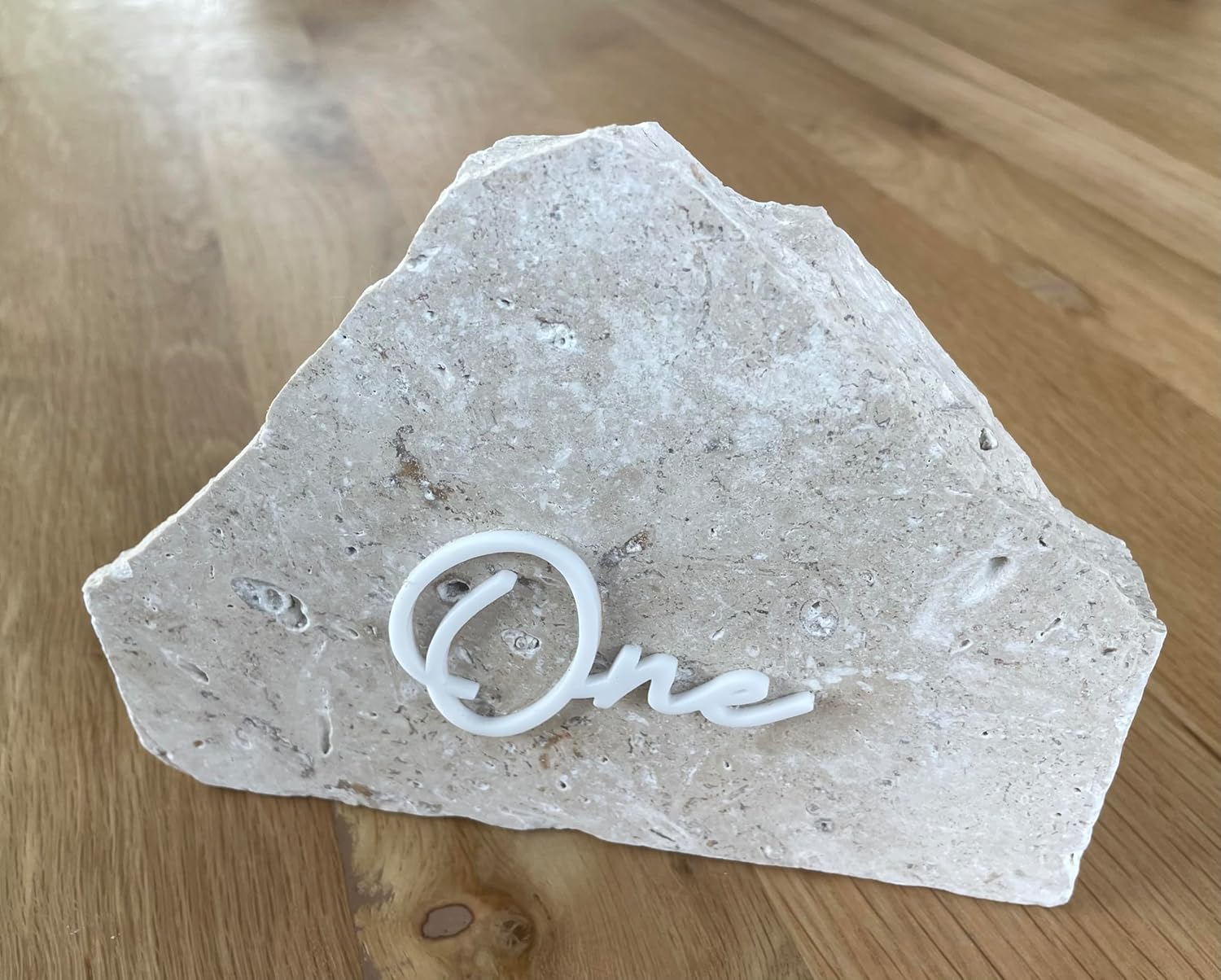 Cursive Wedding Table Number SET, DIY thin modern Black or White acrylic cutouts with silicone glue included. Words only, no backing (One - Five, Gloss White)