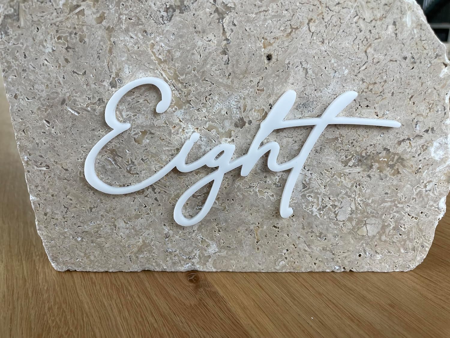 Cursive Wedding Table Number SET, DIY thin modern Black or White acrylic cutouts with silicone glue included. Words only, no backing (One - Twenty, Gloss White)