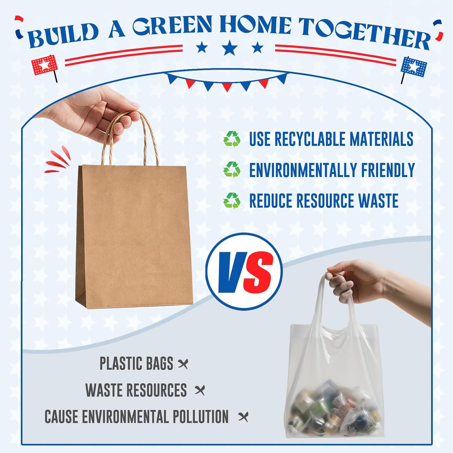 - Eco-friendly Gift Bags:These kraft paper bags are made of Recycled Paper. FSC compliant.This small paper bag is healthier and more upscale than plastic bags.Paper bag size: 5.25 inches long,3.75 inches wide, 8 inches high,pack of 500pcs.