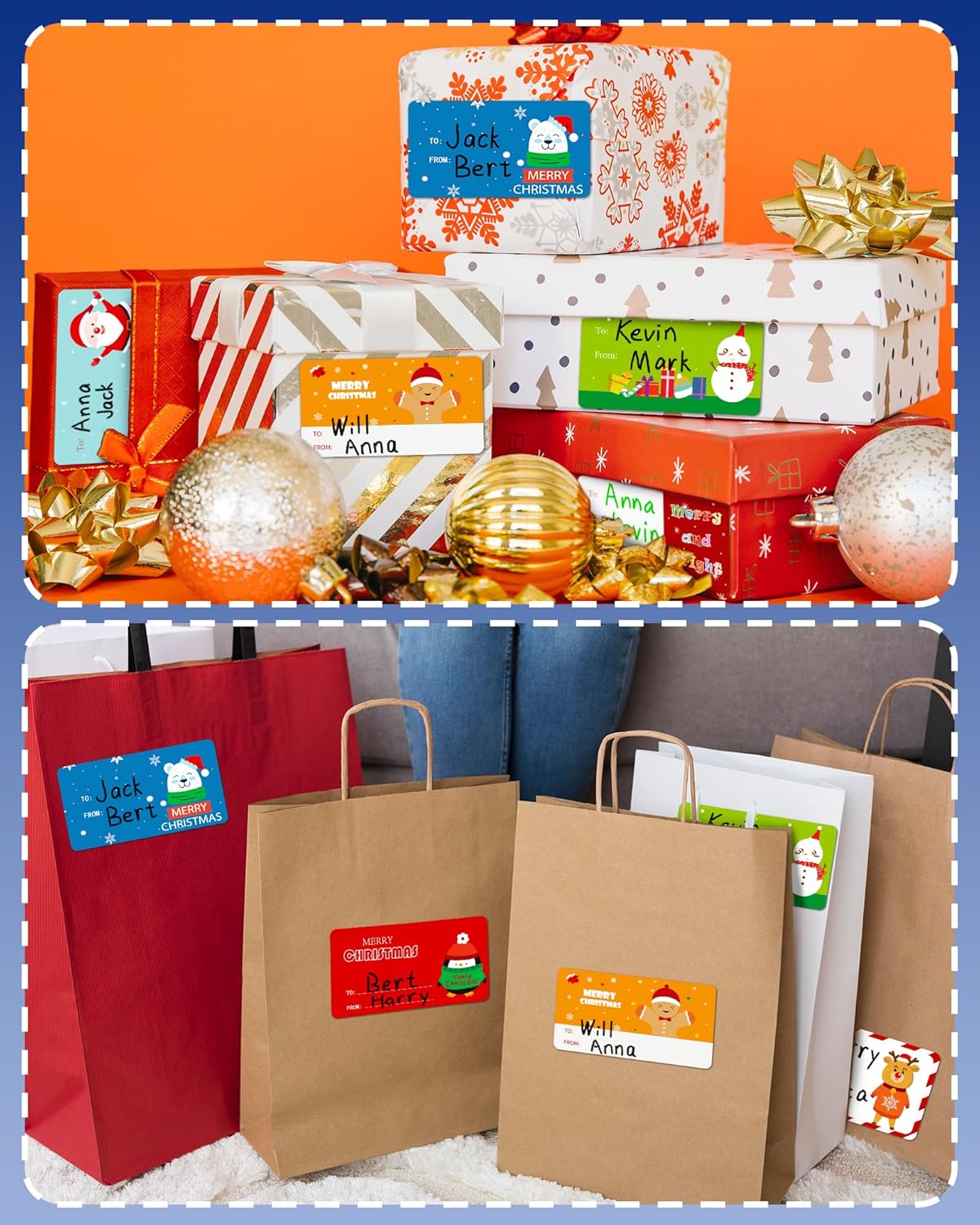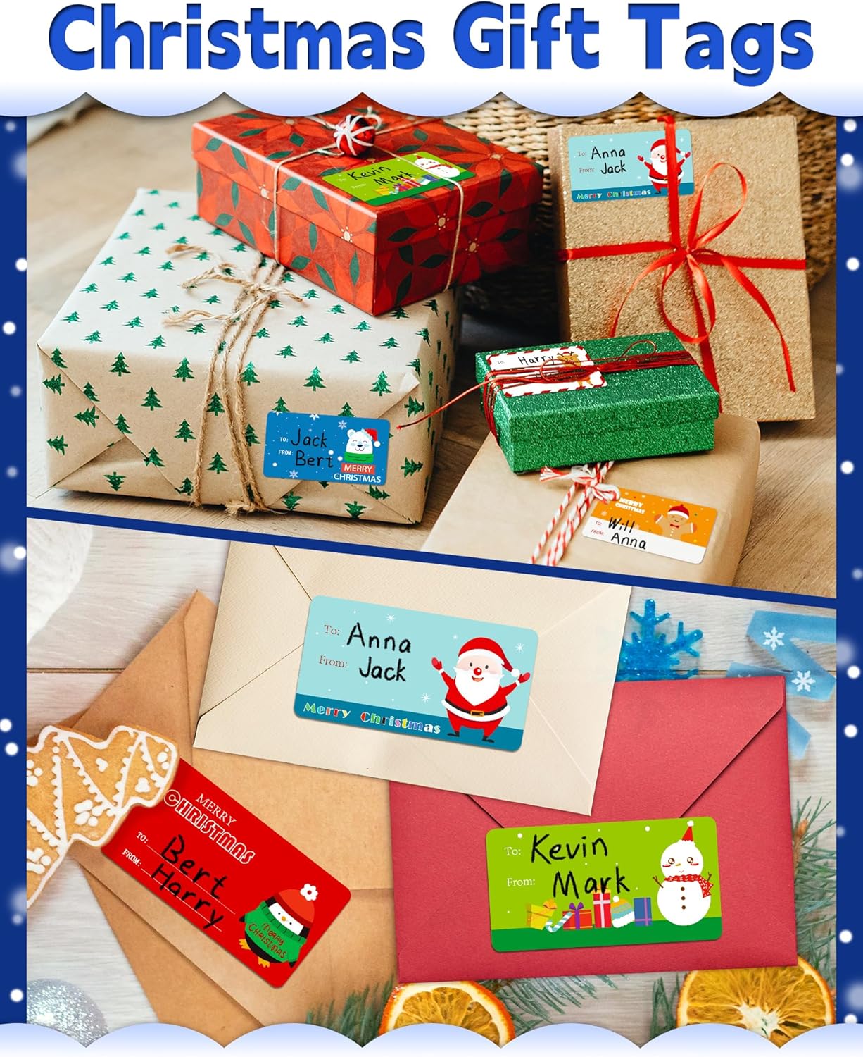 - EASY TO USE: Christmas label for gifts is simple to use. Simply peel them off and adhere them to gift boxes, gift bags, envelopes, snack bags, etc. The Christmas gift tags stickers can be stuck on repeatedly and the adhesive can be torn off without any residues. No worries about needing a tape, these are very useful especially when in a hurry and donβt want to take the time to tie on the Christmas tags.