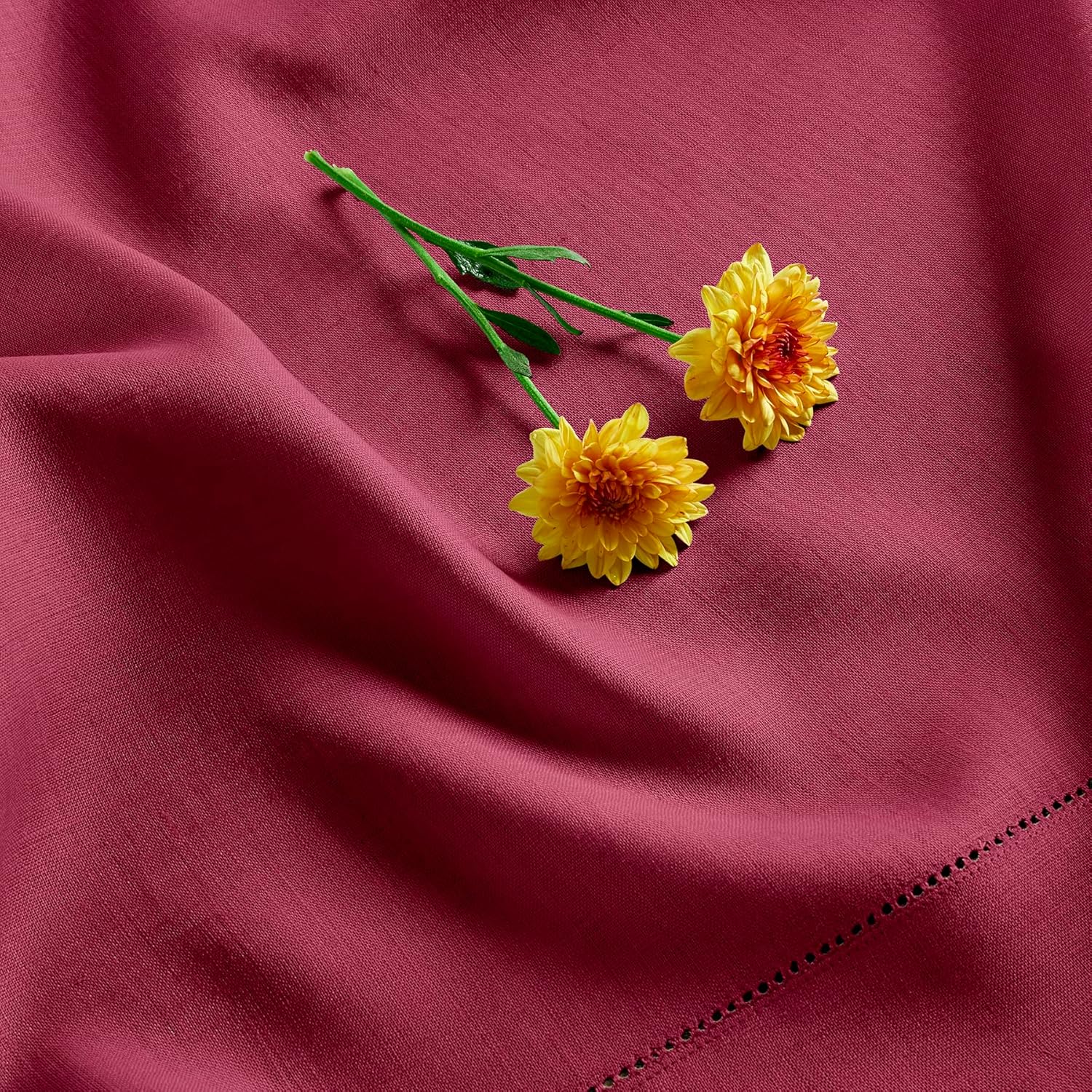 Solino Home Beet Linen Tablecloth 60 x 90 Inch - 100% Pure Linen Hemstitch Table Cloth for Rectangle Tables - Classic Hemstitch, Machine Washable Tablecloth for Fall, Thanksgiving, Christmas, Holiday