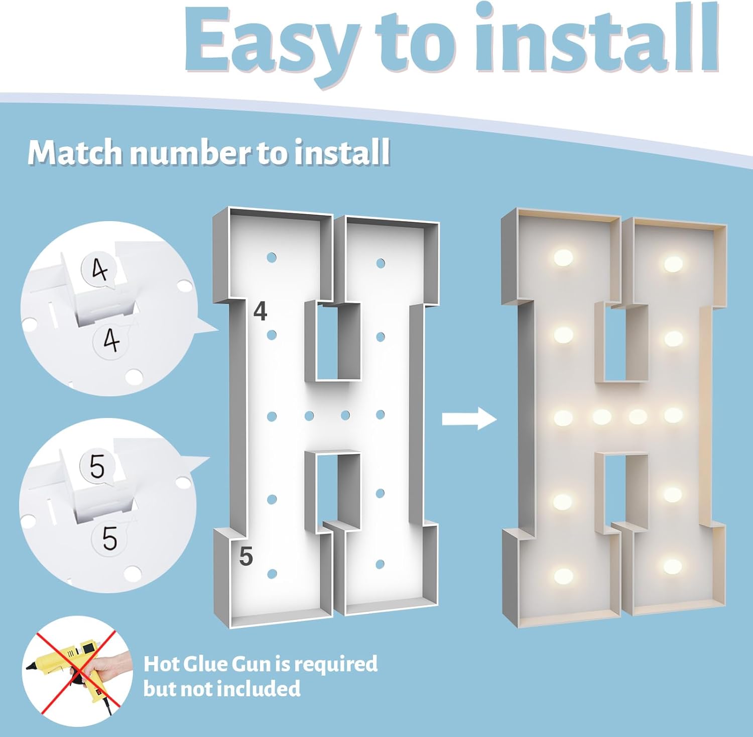 - ASSEMBLY REQUIRED: The marquee numbers need to be assembly with hot glue gun(not included in the package) Assemble it in advance will make your party amazing and fantastic
