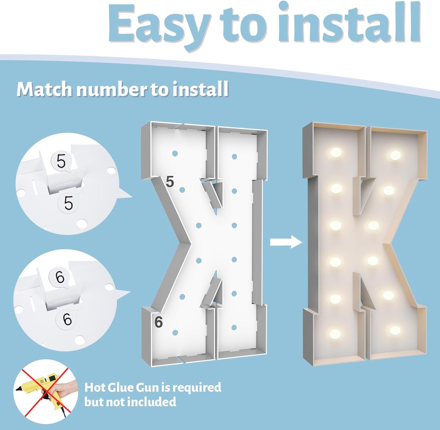 - ASSEMBLY REQUIRED: The marquee numbers need to be assembly with hot glue gun(not included in the package) Assemble it in advance will make your party amazing and fantastic