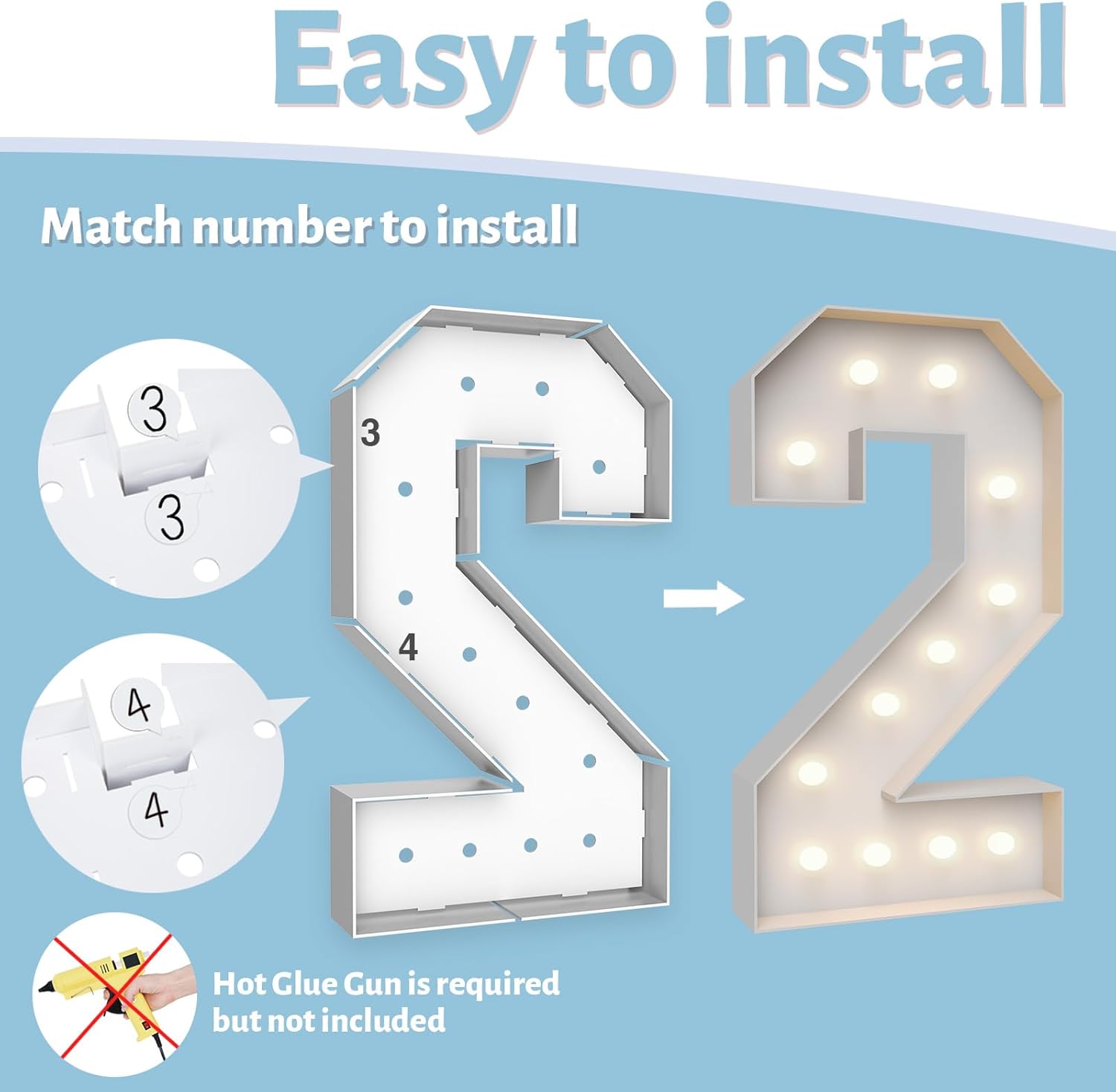 - ASSEMBLY REQUIRED: The marquee numbers need to be assembly with hot glue gun(not included in the package) Assemble it in advance will make your party amazing and fantastic