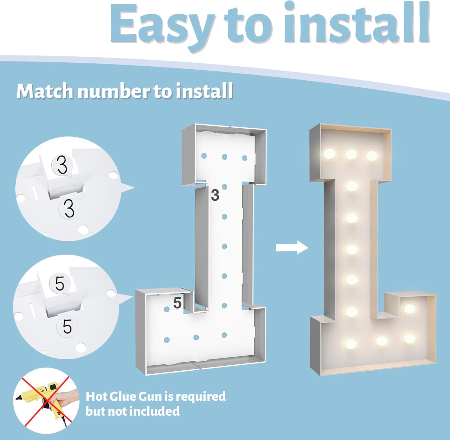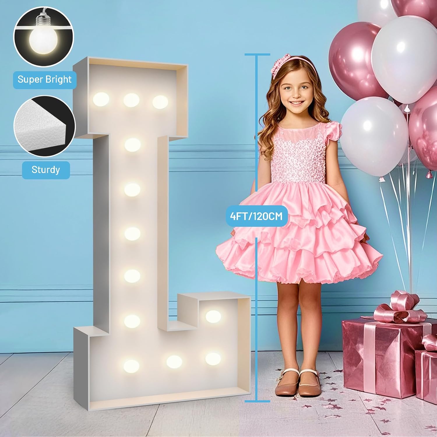4FT Marquee Light Up Letters L,Party Decoration Large Marquee Light Up Letters with Weighted Water Bag,Pre-cut Foam Board Set Can Be Used for Birthdays,Weddings,Baby Anniversaries