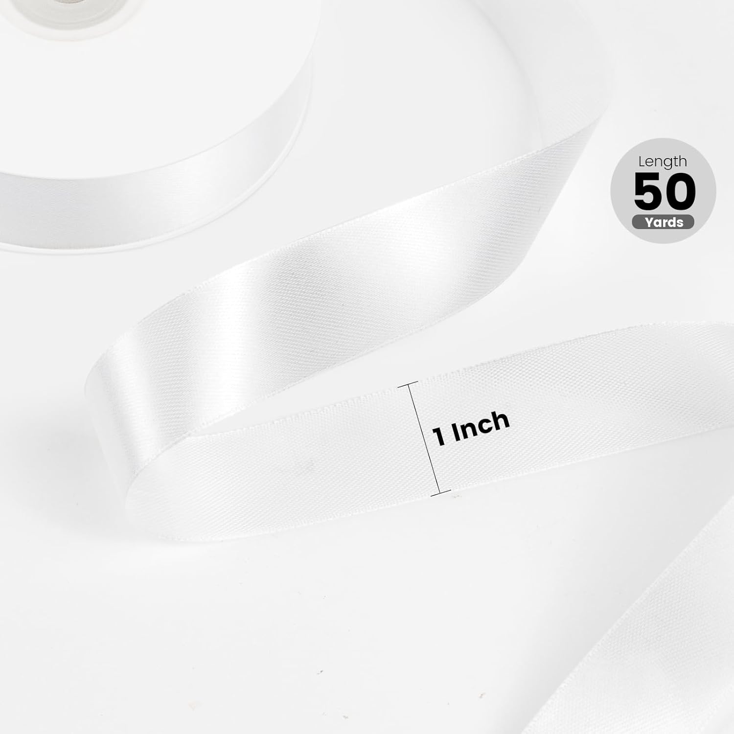 1" x 50 Yards Satin Ribbon - White Silk Ribbon with Spool - Ideal for Gift Wrapping, Floral Bouquets, Crafts, Wedding Party Decorations, Christmas and Sewing Projects