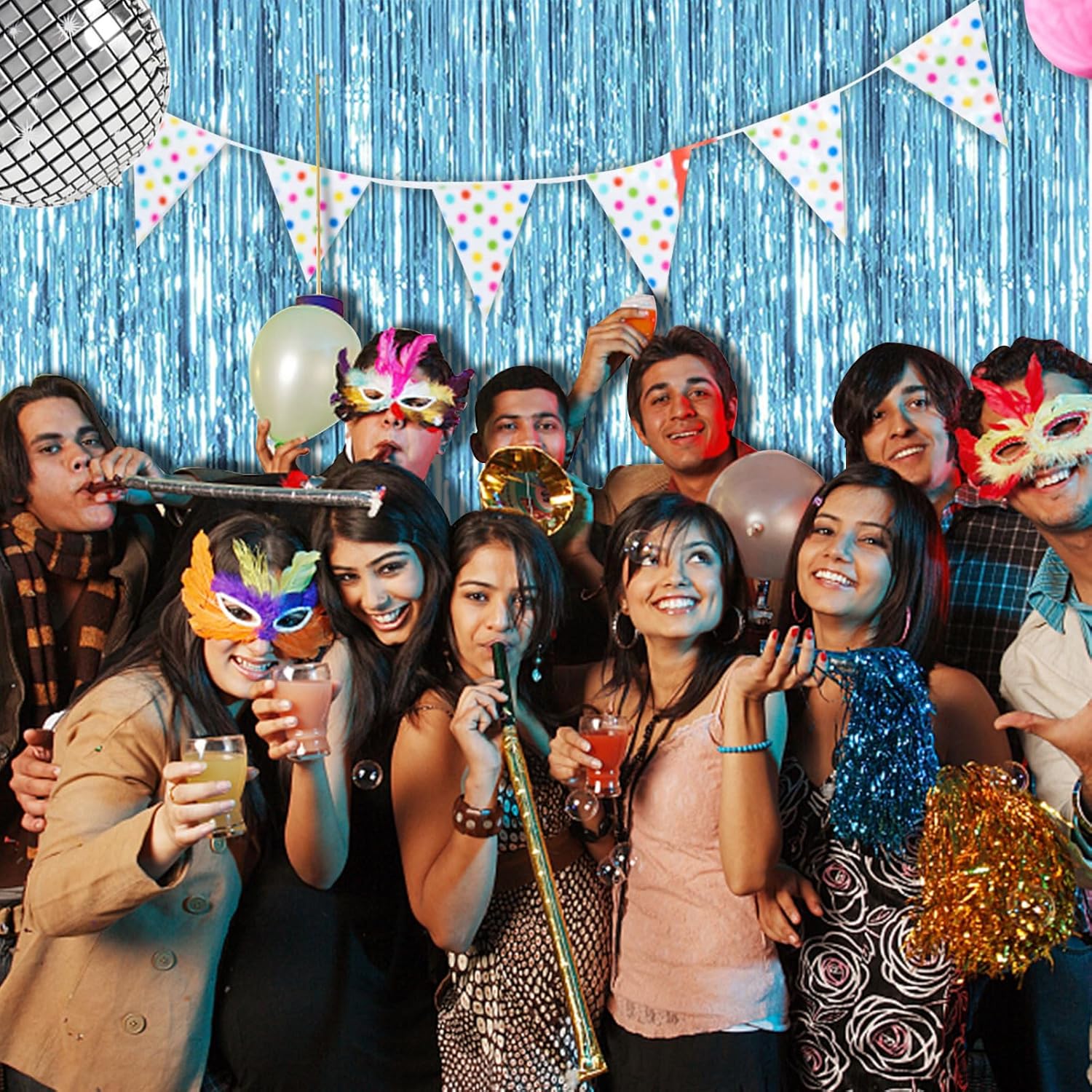 - Party Streamers Backdrop: 5Packs/Set, each pack curtains size is 3.28 ft x 6.56 ft, enough length foil fringe backdrops are perfect for the door or wall to create an impressive decoration for parties, events, and photo booths. Create your own party decorations now!