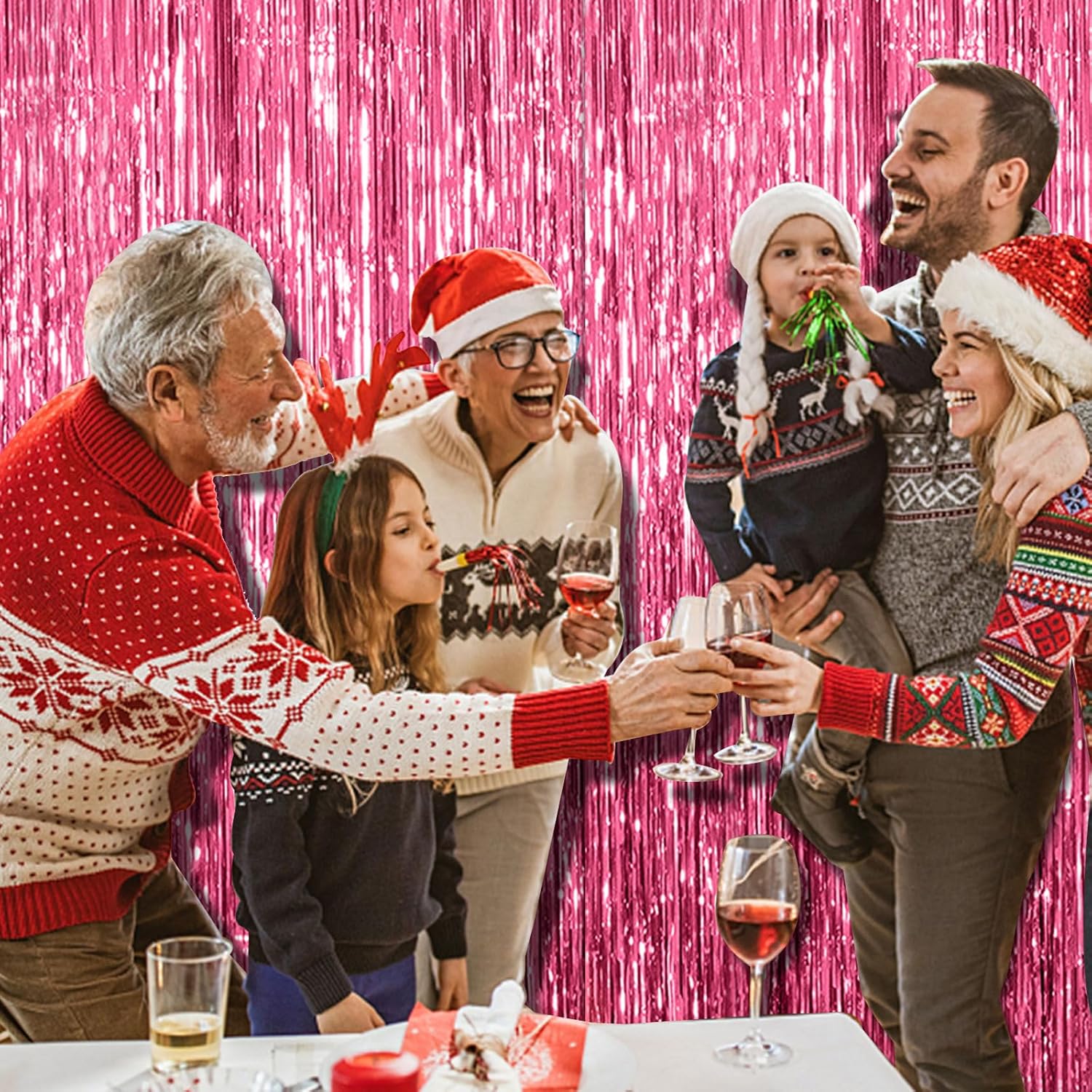- Party Streamers Backdrop: 5Packs/Set, each pack curtains size is 3.28 ft x 6.56 ft, enough length foil fringe backdrops are perfect for the door or wall to create an impressive decoration for parties, events, and photo booths. Create your own party decorations now!