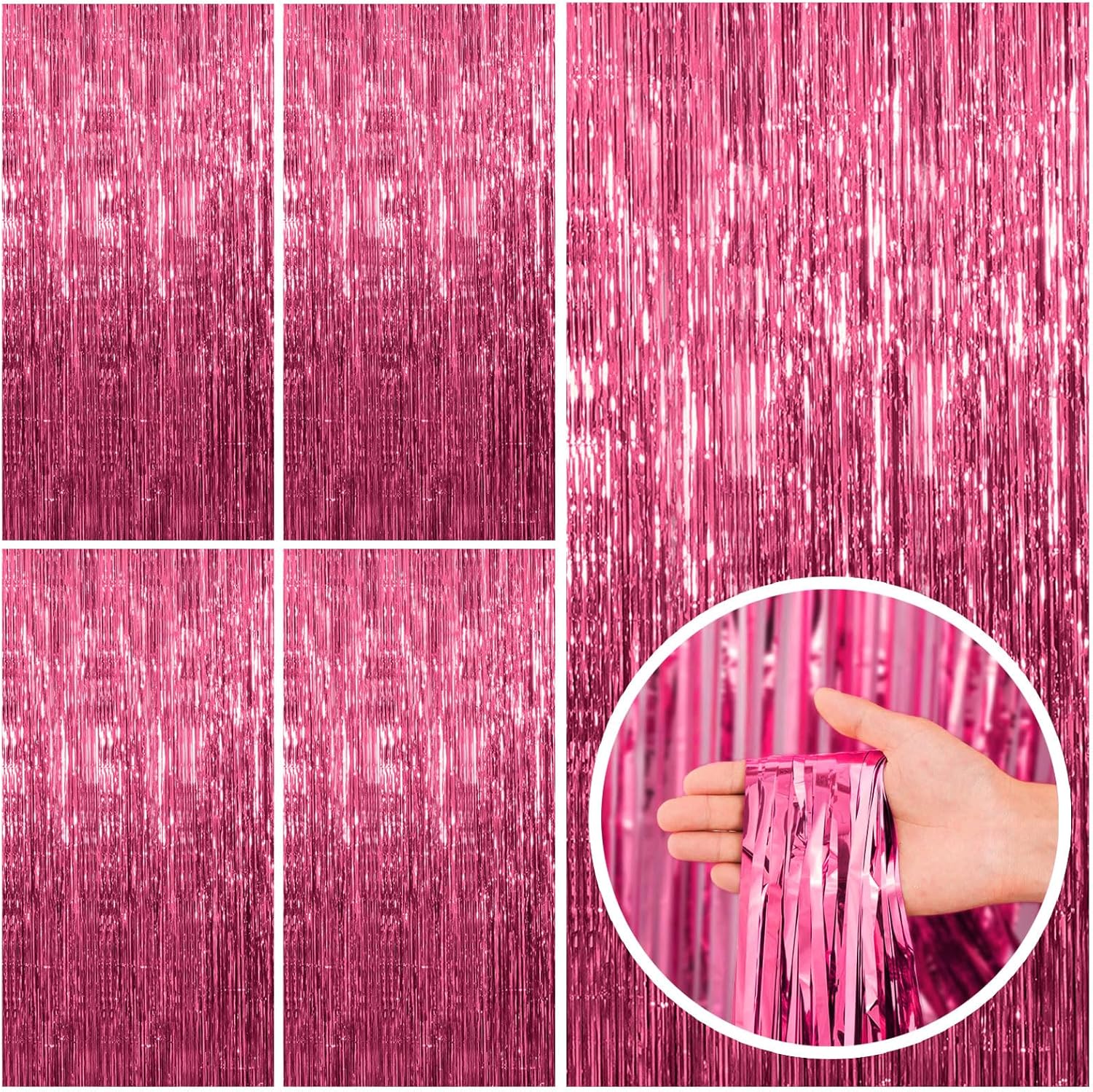 5 Pack Pink Tinsel Curtain Party Backdrop Foil Fringe Birthday Photo Booth Streamer Backdrop Theme Decorations