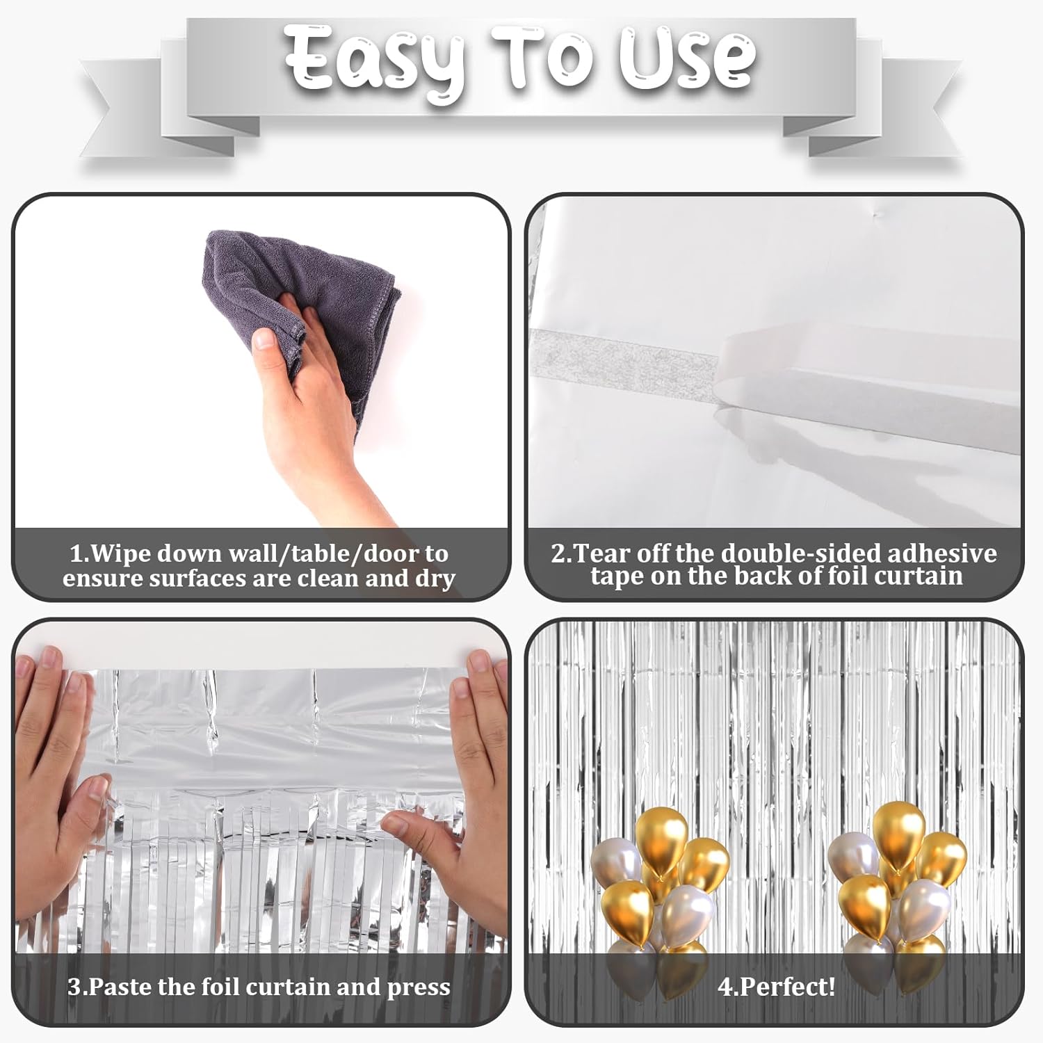- Premium Material: This silver foil curtain backdrop is made of stable tinsel, non-fading, stay shiny and reusable. Unfold it and then enjoy your glittering party