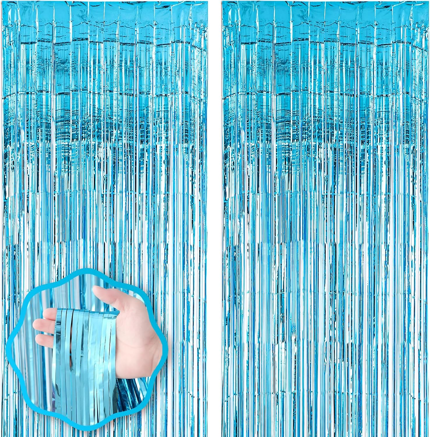 - Premium Material: This Light Blue foil curtain backdrop is made of stable tinsel, non-fading, stay shiny and reusable. Unfold it and then enjoy your glittering party