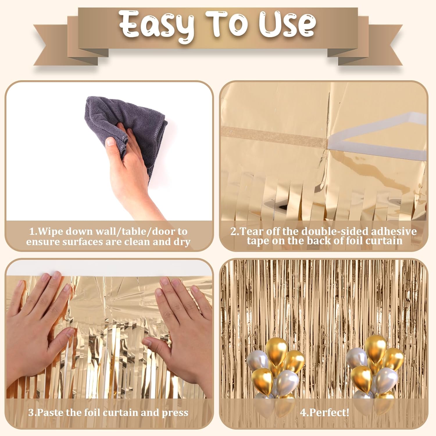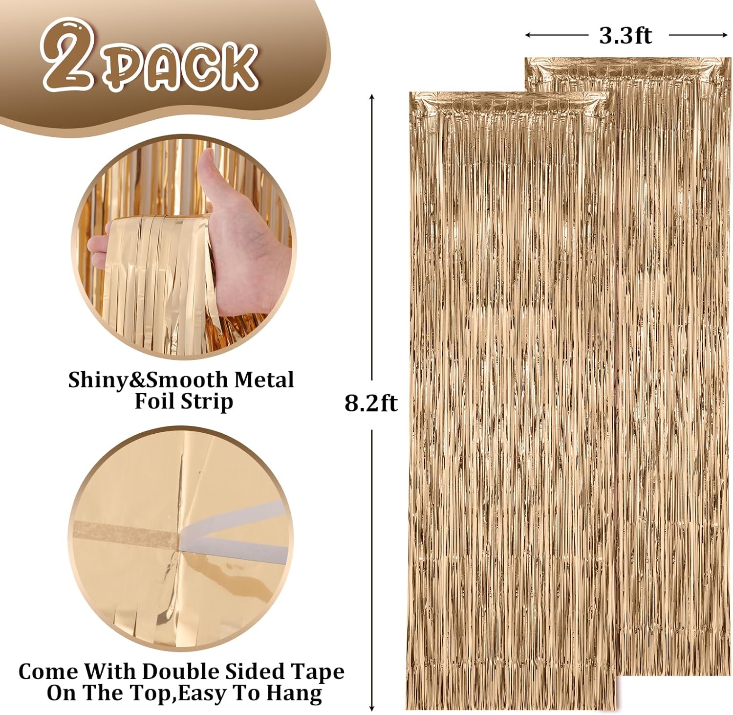 - Premium Material: This champagne foil curtain backdrop is made of stable tinsel, non-fading, stay shiny and reusable. Unfold it and then enjoy your glittering party