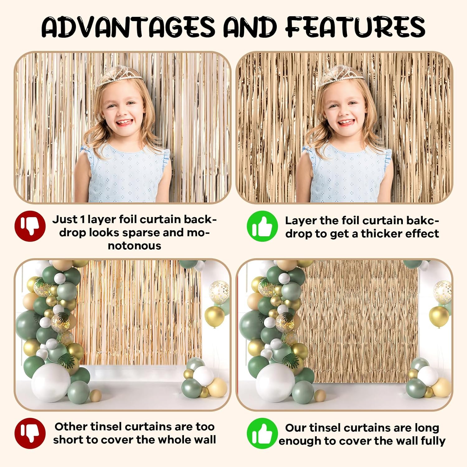 - Eye-Catching Design: These tinsel backdrops boast vibrant colors and a shimmering effect that reflects light beautifully. Your friends will be mesmerized by the captivating atmosphere these curtains create
