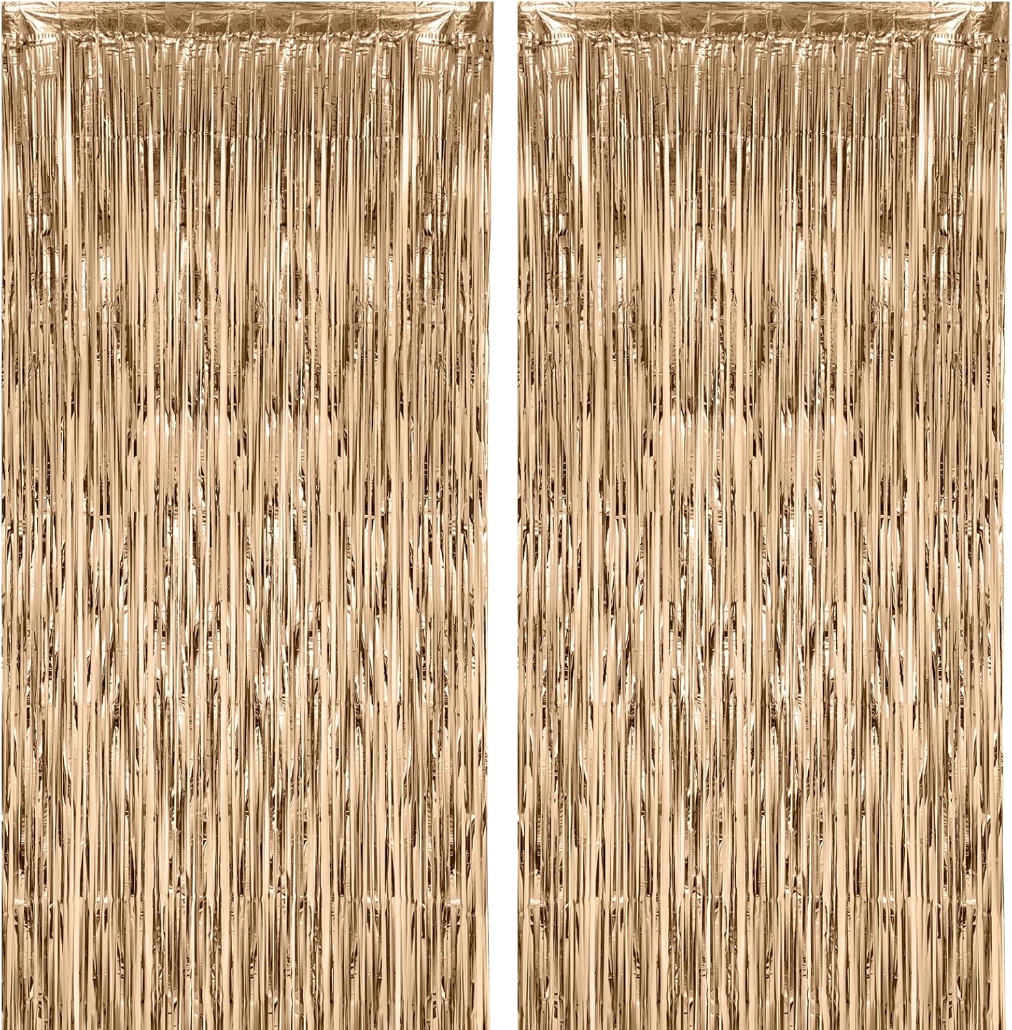 2 Pack Champagne Foil Fringe Backdrop Curtains, Tinsel Streamers Birthday Party Decorations, Fringe Backdrop for Graduation, Baby Shower, Gender Reveal, Disco Party