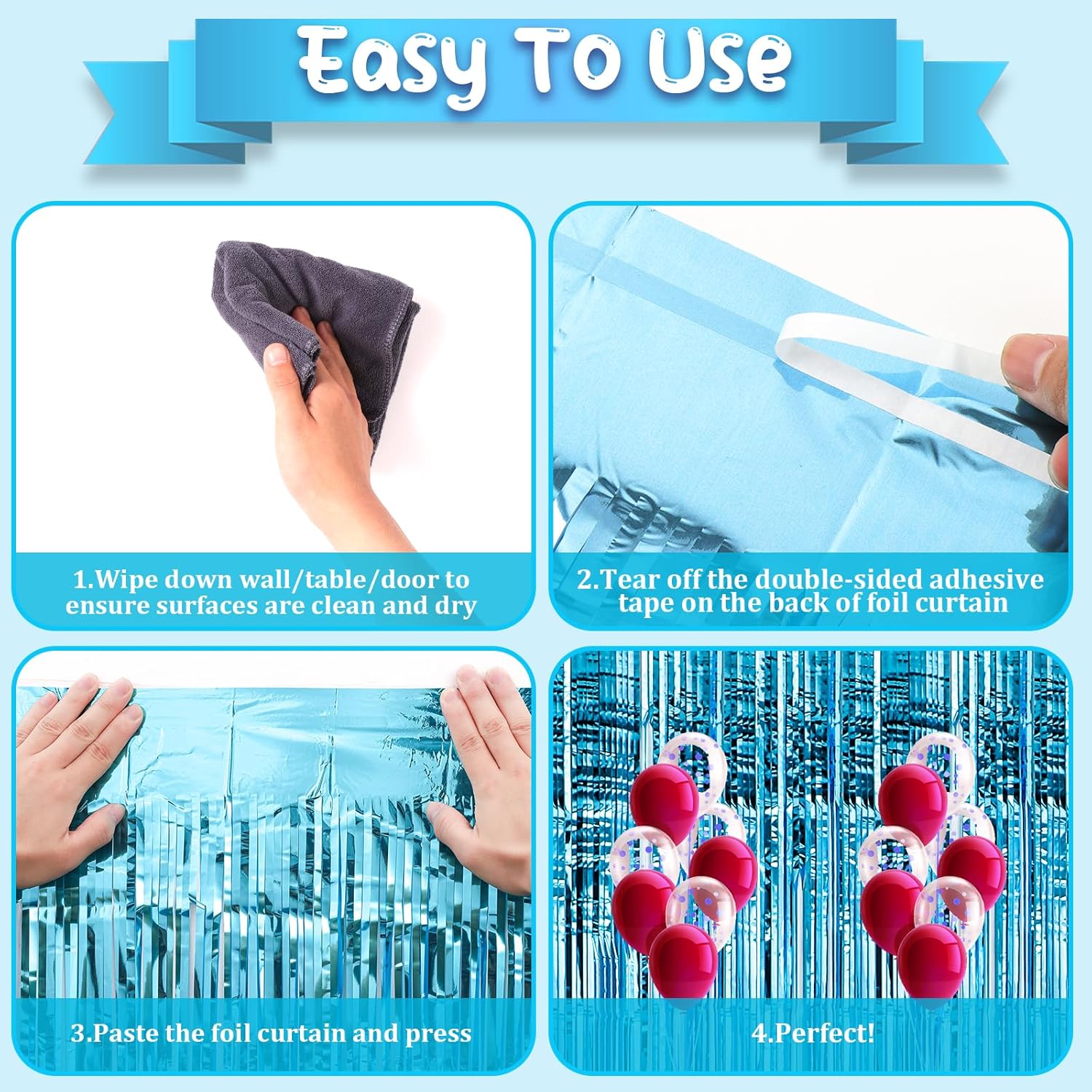 - Premium Material: This Light Blue foil curtain backdrop is made of stable tinsel, non-fading, stay shiny and reusable. Unfold it and then enjoy your glittering party
