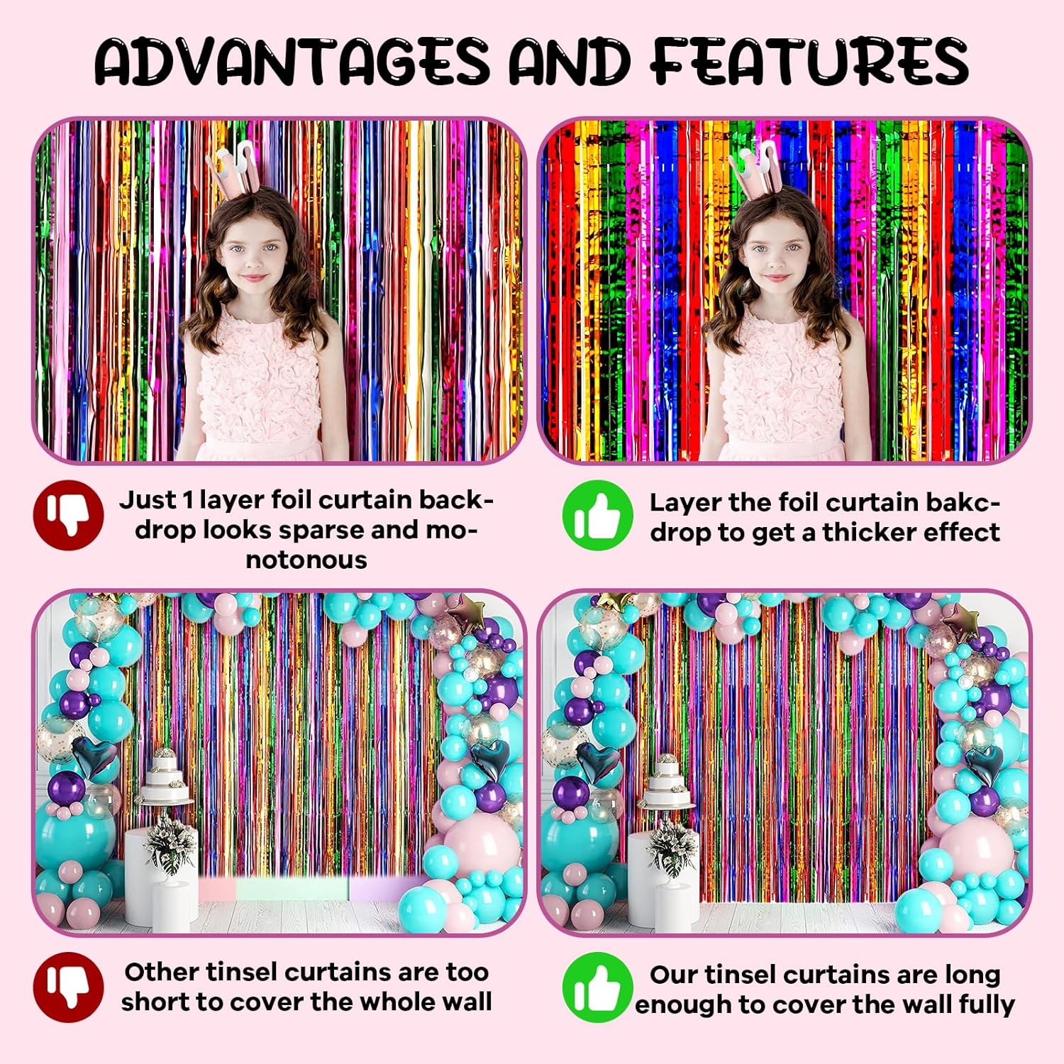- Eye-Catching Design: These tinsel backdrops boast vibrant colors and a shimmering effect that reflects light beautifully. Your friends will be mesmerized by the captivating atmosphere these curtains create