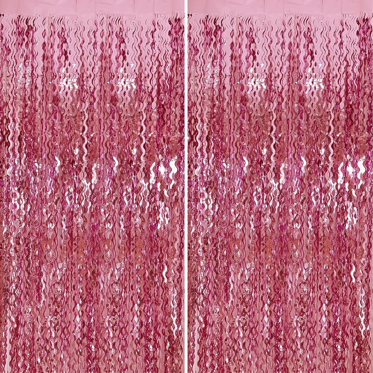 - Pink Photo Backdrop Curtains - The wavy foil fringe curtain with sparkle, a stunning decorative piece that will add a touch of glamour and elegance to your party decorations.
