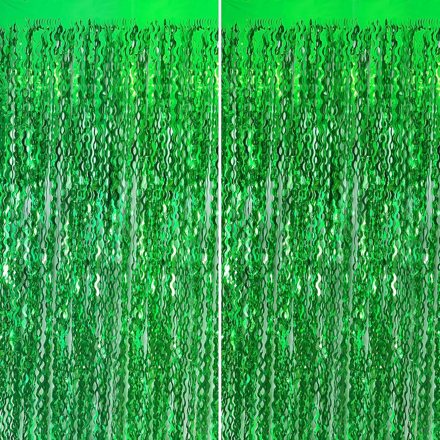 Green Streamers Foil Fringe Curtains Fringe Backdrop Curtains, Football Party Decorations, Green Birthday Decorations for Boy, Christmas Favor, Dinosaur Birthday Decor, Jungle Party Decorations
