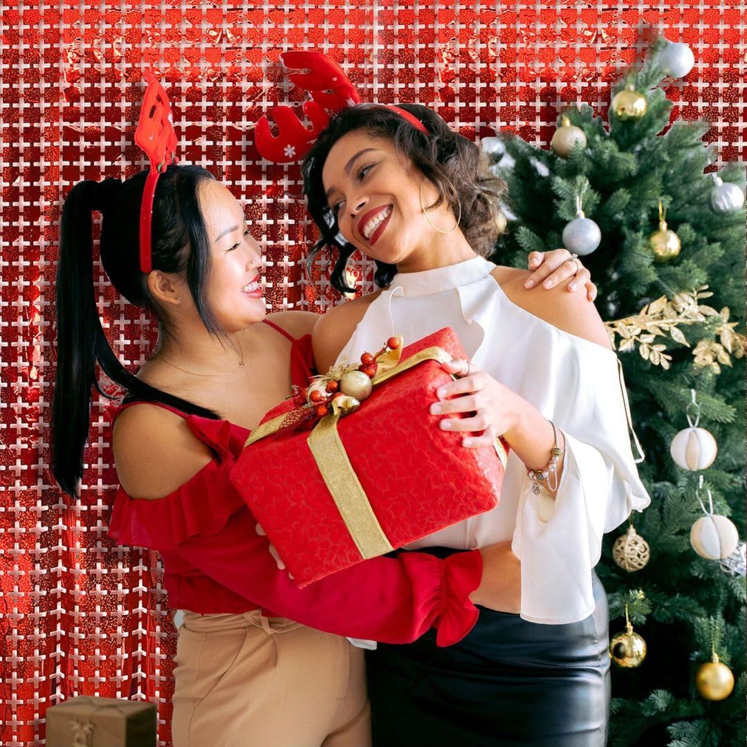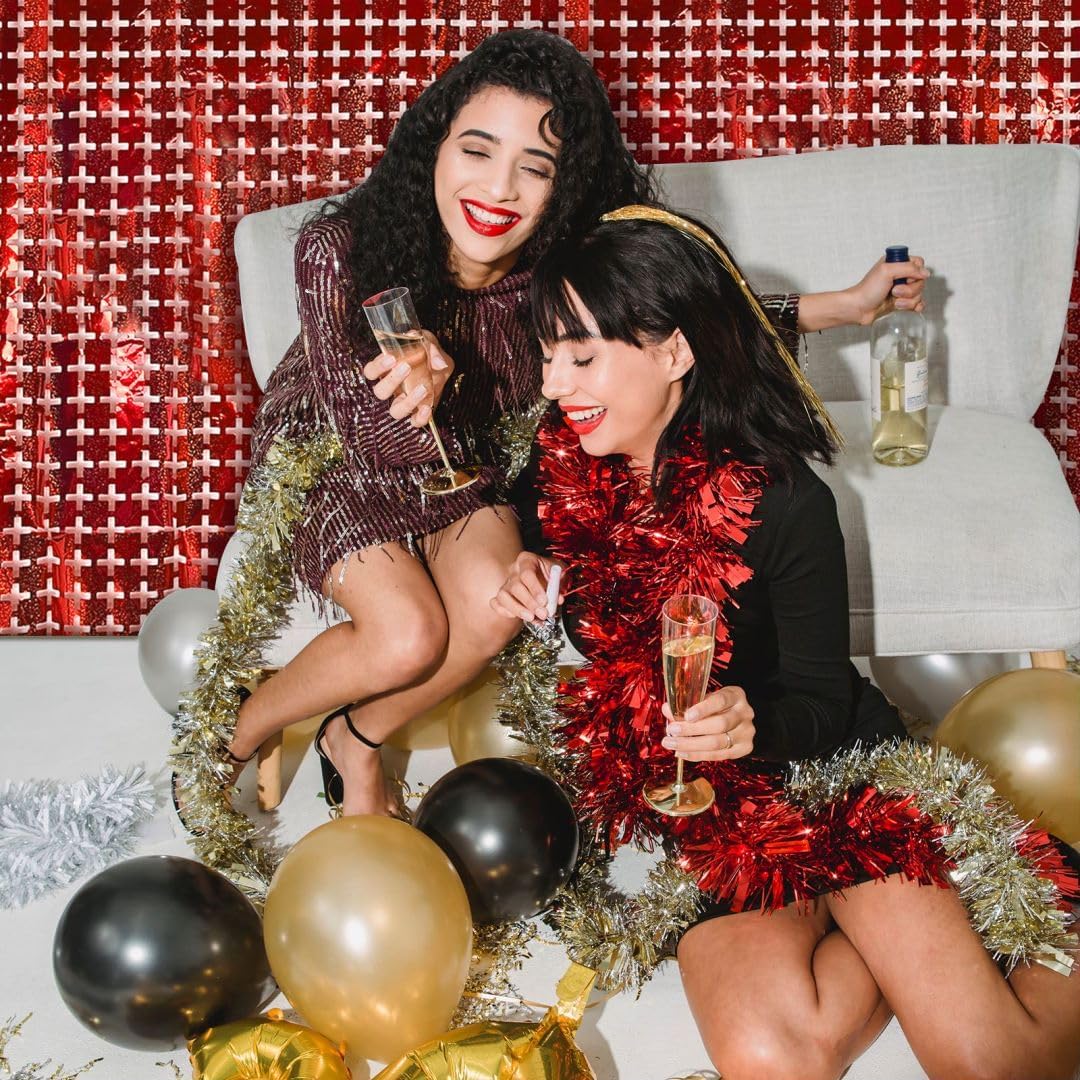 - 【Christmas Party Decorations】 You can use this glitter gorgeous tinsel streamers foil background to decorate your celebration party. Hang them on a carpeted end or wall as a backdrop,or it could be one entrance to the party. You can paired with an LED light, balloons, banners and various photo props on this backdrop.