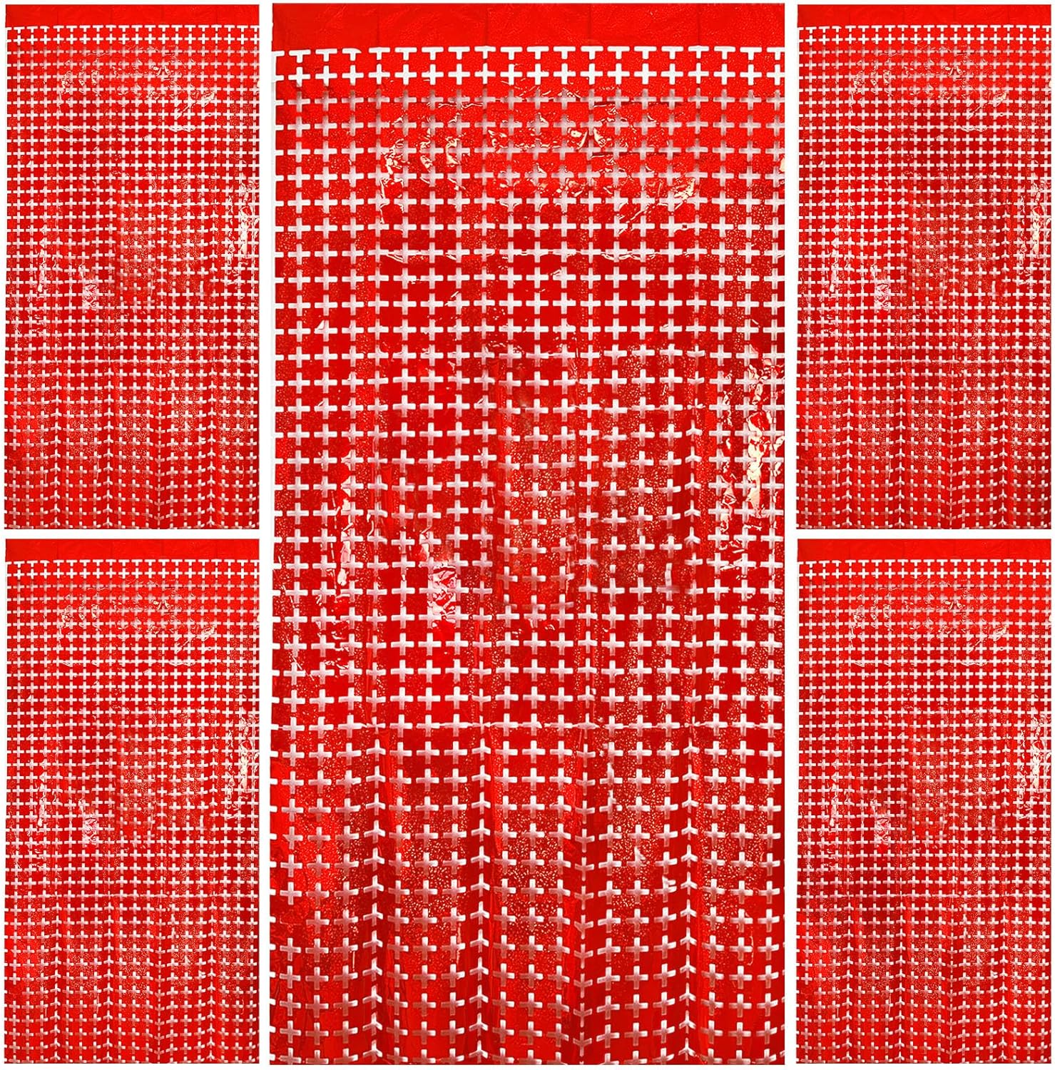 Square Tinsel Curtain Party Backdrop - 5pcs Glitter Foil Fringe Curtain Decor Red Photo Booth Backdrop Streamers for Halloween, Christmas, Birthday, Graduation, Wedding Party Decorations