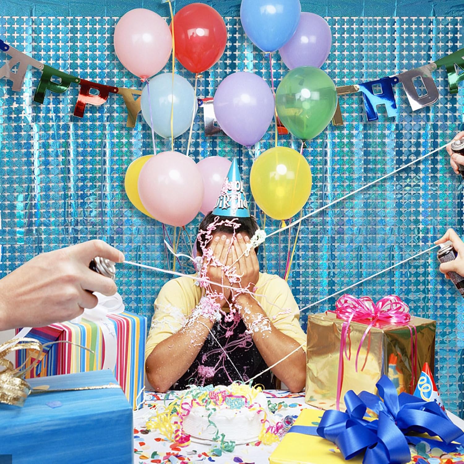 - 【Blue Streamers Party Decorations】You will get 5pcs 3.2 x 6.5 feet blue square shape laser foil fringe tinsel curtain. You can use to decorate party easily, door streamer. Sparkle and bling streamerswill definitely create a Shiny nice atmosphere for your party.