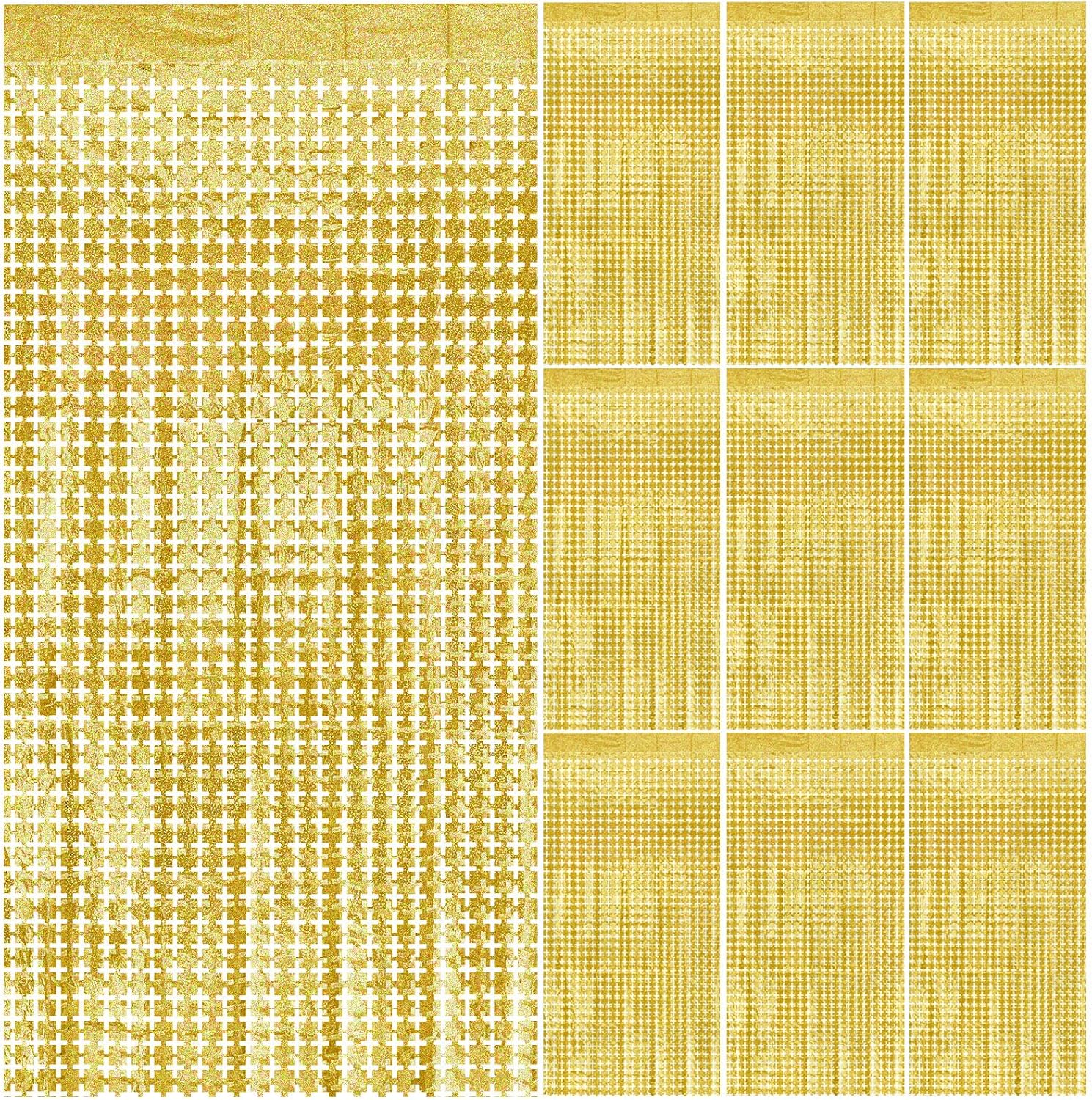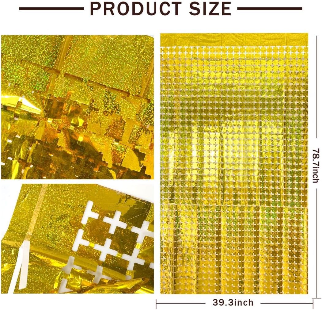 - 【Gold Streamers Party Decorations】You will get 10pcs 3.2 x 6.5 feet gold square shape laser foil fringe tinsel curtain. You can use to decorate party easily, door streamer. Sparkle and bling streamerswill definitely create a Shiny nice atmosphere for your party.
