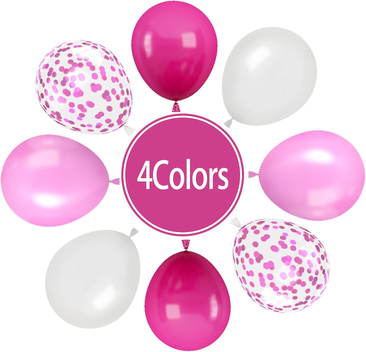- Hot Pink Balloons Set: The 12 inch 62pcs hot pink balloons set includes 20pcs hot pink balloons, 15pcs pink balloons, 10pcs pink confetti balloons, 15pcs pearl white balloons, 2 roll of ribbon. A variety of hot pink latex balloons is suitable for your beautiful art theme decoration.