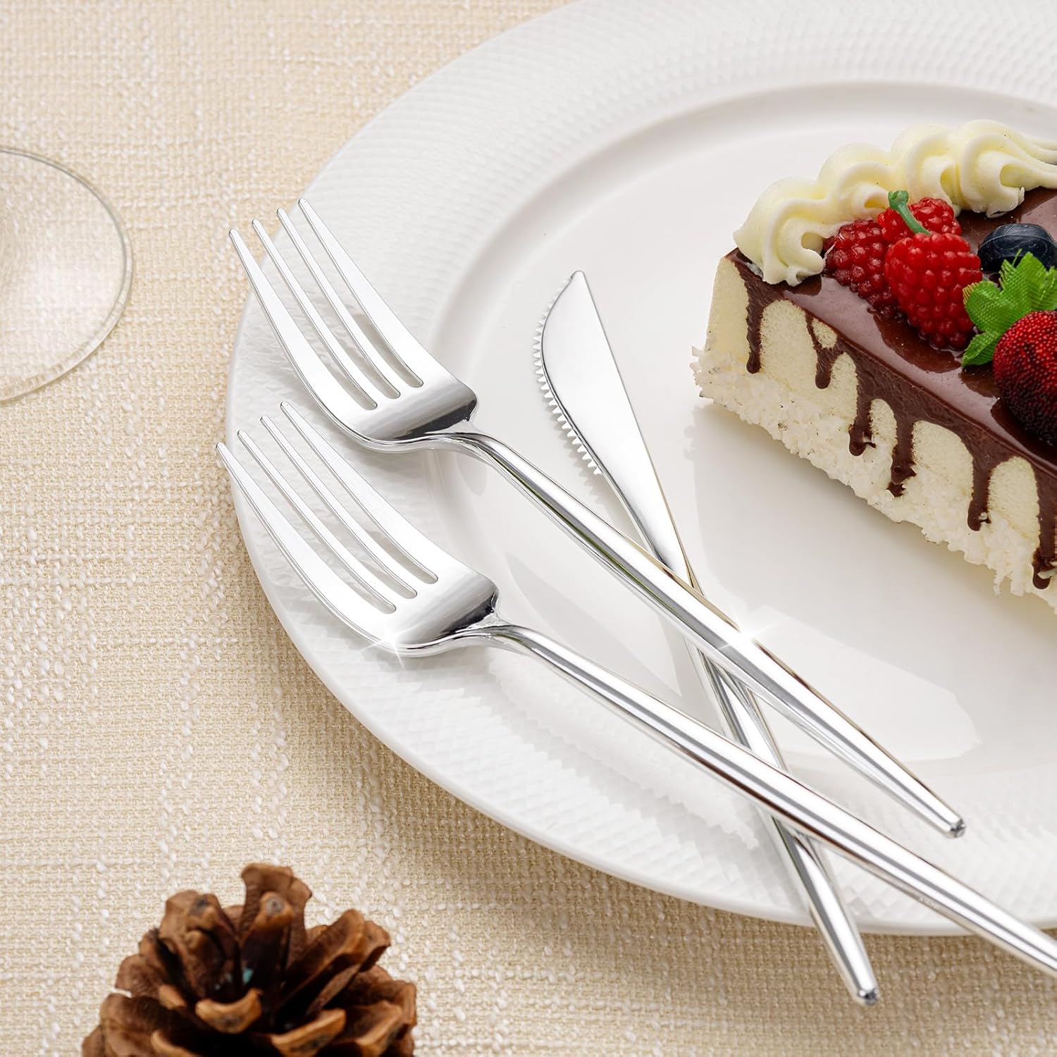 - Elegant Design: Our plastic utensils set silver adds a touch of elegance to any party, wedding, or event.And impress guests with our silver cutlery set disposable.