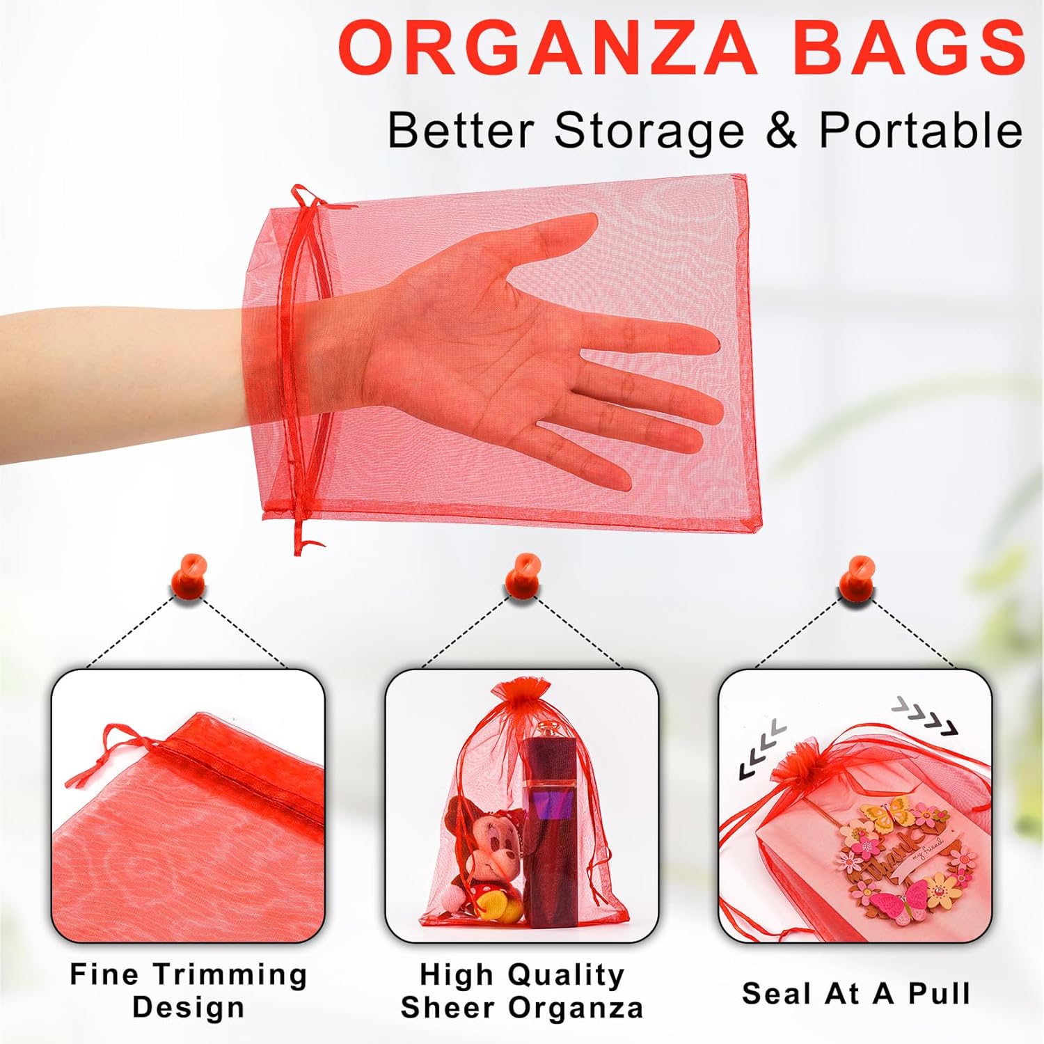 - Included Components : 100 Pcs Red Organza Bags 6.5x9 Inch