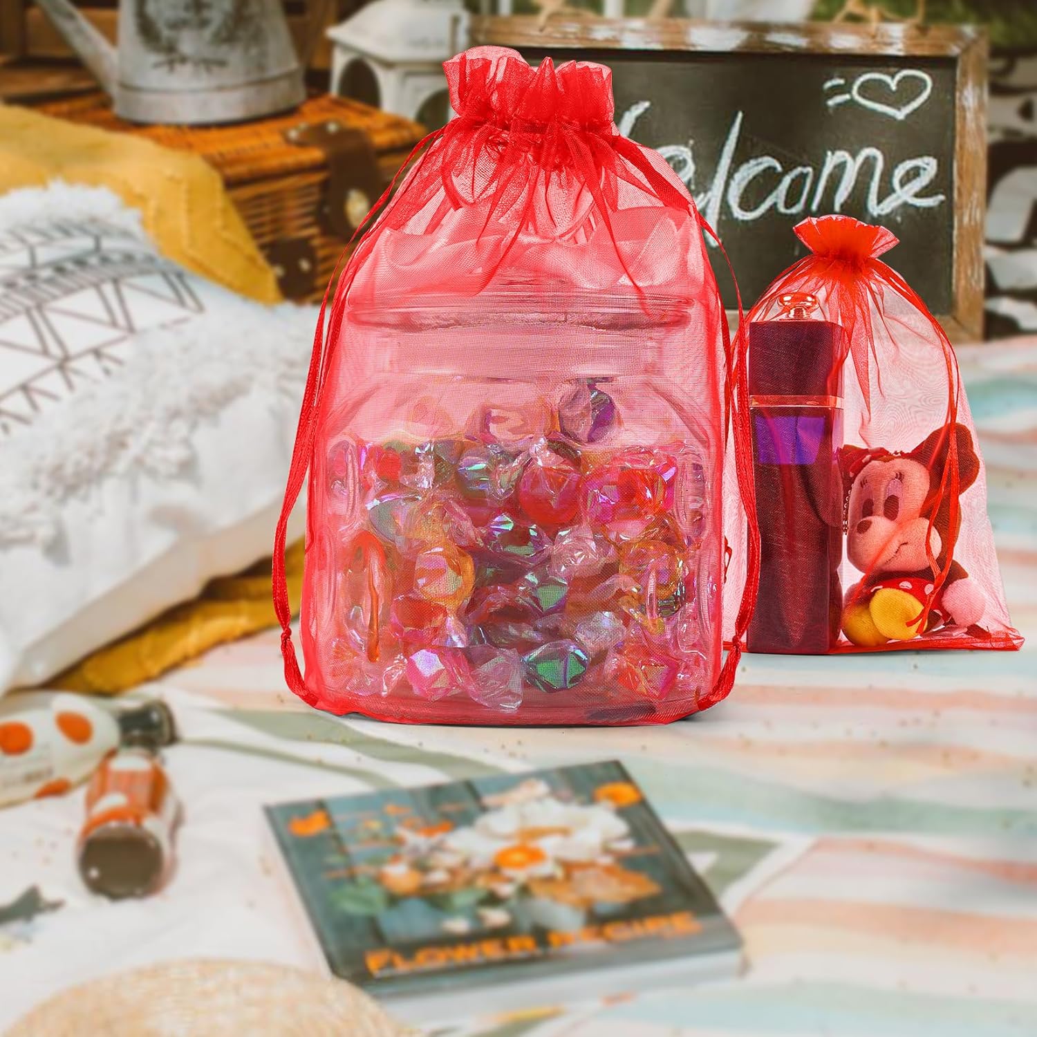 - SIZE&COLOR- Size: 6.5x9 Inch, Color: RED, also available in other colors (Hot Pink, Green, Pink, Black, White, Purple, Orange). Package includes 100 pieces of red organza bags, perfect for various occasions: Valentine, Christmas, Halloween, Wedding or Birthday, etc.