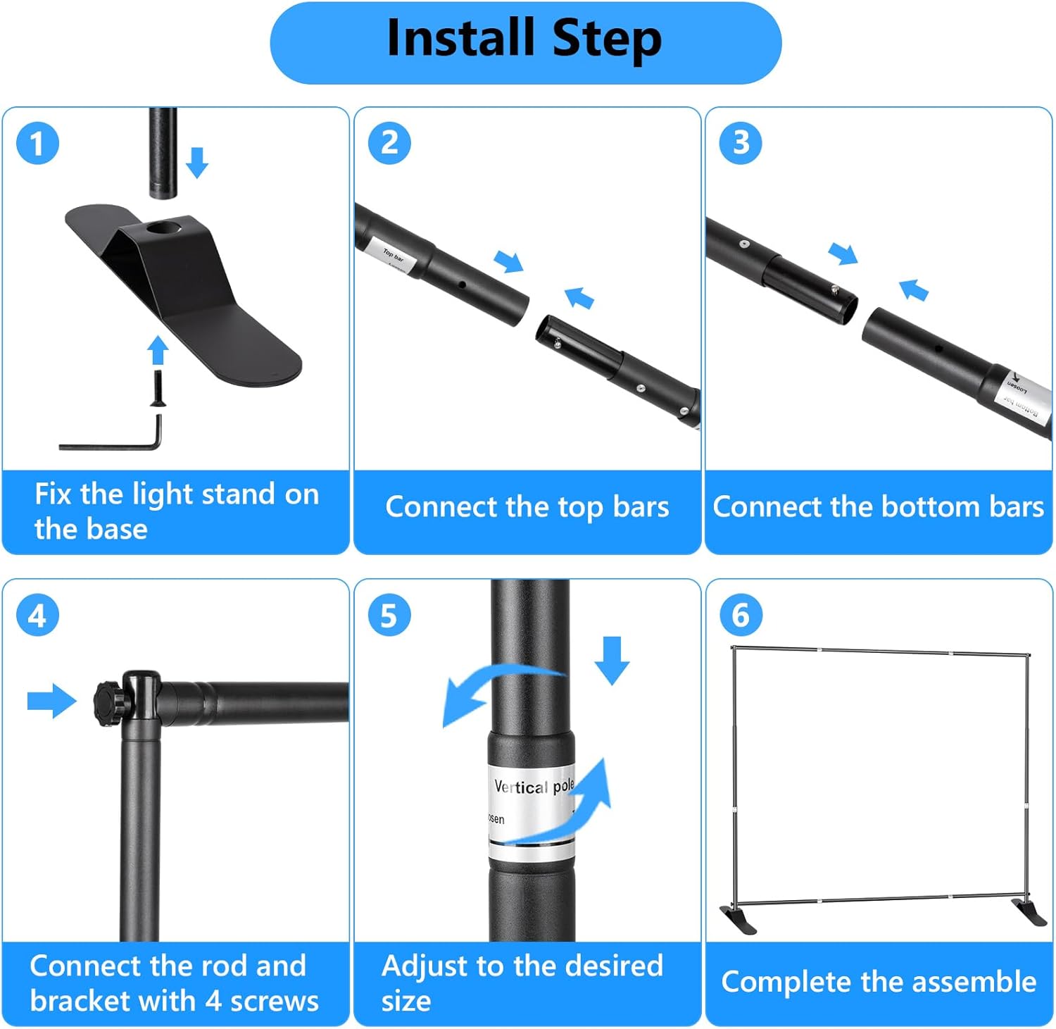 - Upgraded Heavy Metal Base/Thickened Pipe Diameter /More Stable & Wind-Proof/Adjustable Size. Suitable for meetings, photo exhibitions, local exhibitions, store promotions, photo booth backgrounds, etc. No matter you would like to use at outdoor or in office.