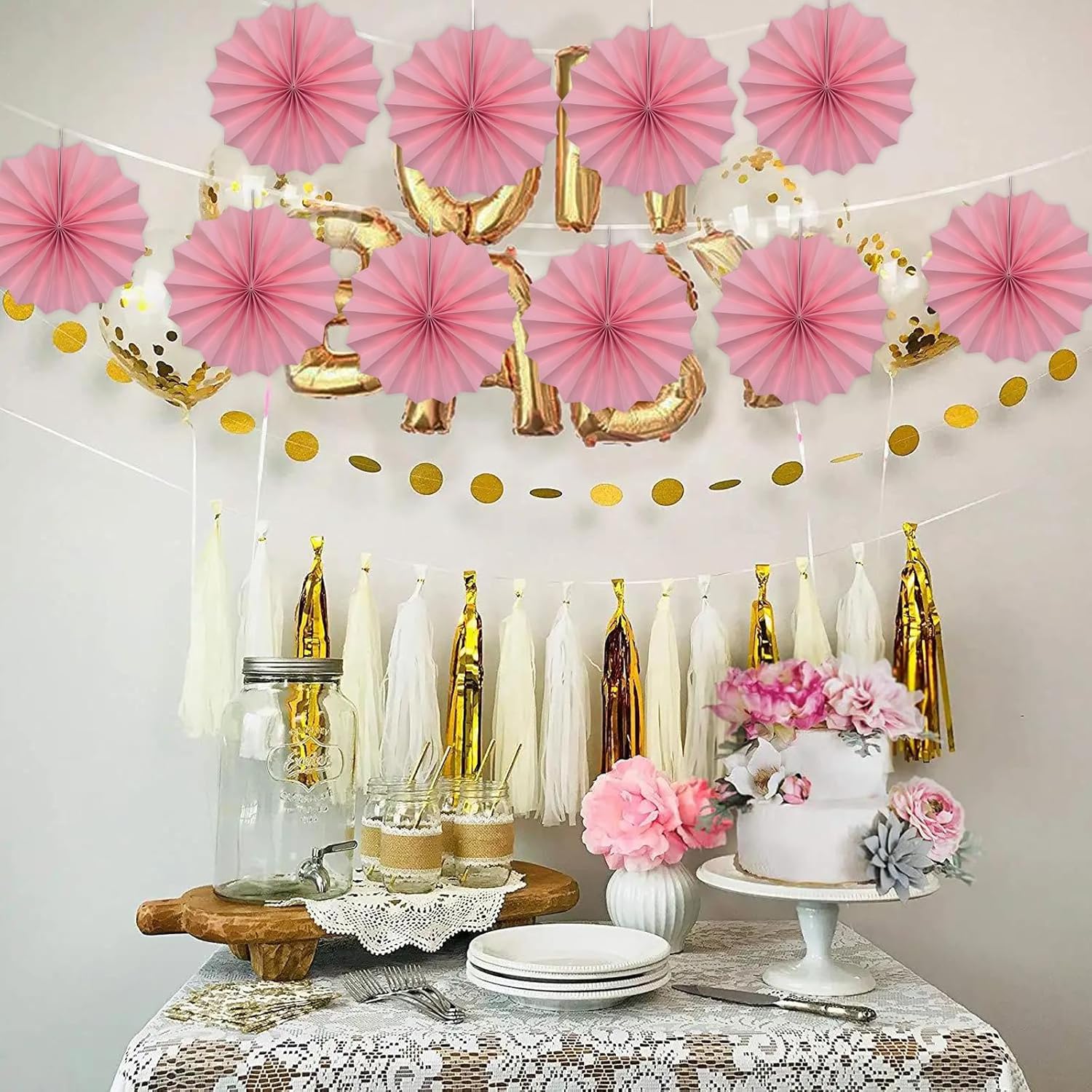 Pink Party Decorations,Pink Paper Decorations for Party,Baby Shower Decorations Party Paper Fans Bulk 8in,Schoolgirl Style Classroom Decor for Party 30 Color DIY Set (Pink)
