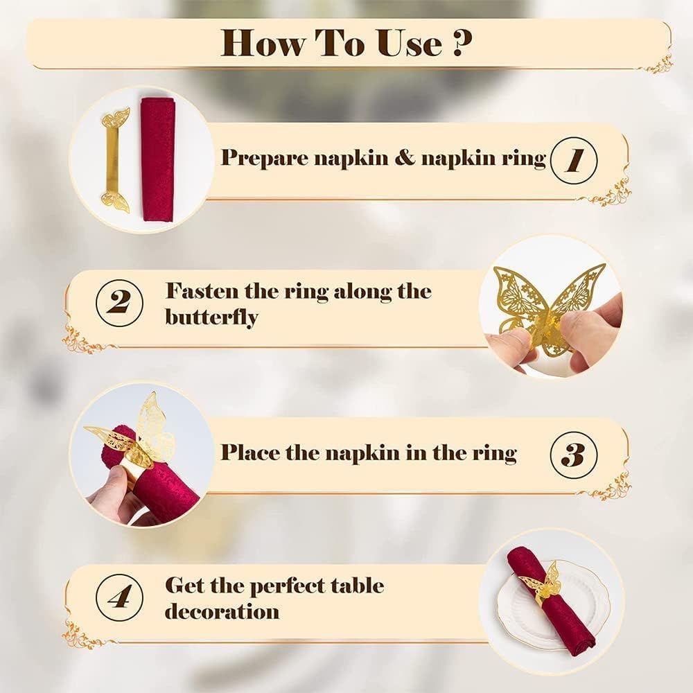 - High quality with comfortable touch.Flat Size:21x2.5cm/8.3x0.98inch; Diameter:4.5cm/1.77inch. Elegant and exquisite butterfly design,nice embellishment for napkin.
