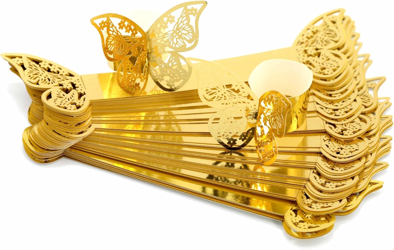 100 Pcs Napkin Rings Laser Cut Butterfly Shape Foil Paper Napkin Holder for Weddings Party Serviette Table Decoration Restaurant (Gold)