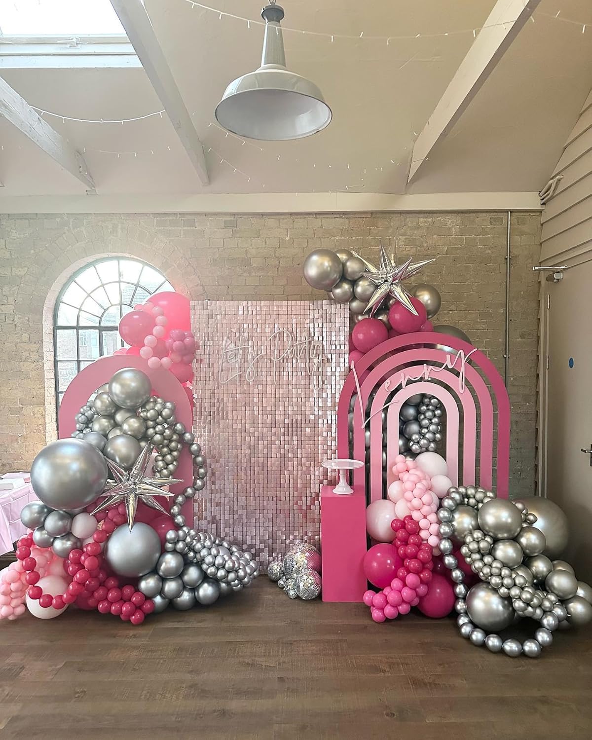 - 12 Inch pink and silver balloons: Package content includes 10 pcs hot pink balloons, 5 pcs light pink balloons, 10 pcs silver balloons,5 pcs pastel pink balloons, a balloon ribbon