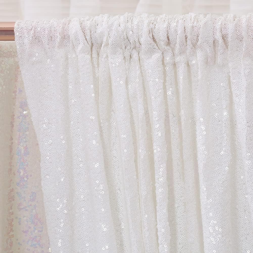 Juya Delight Sequin Backdrop Curtain,2PCS 2FTx8ft Glitter Backdrop Curtain for Party,Birthday,Christmas Wedding Decoration,White