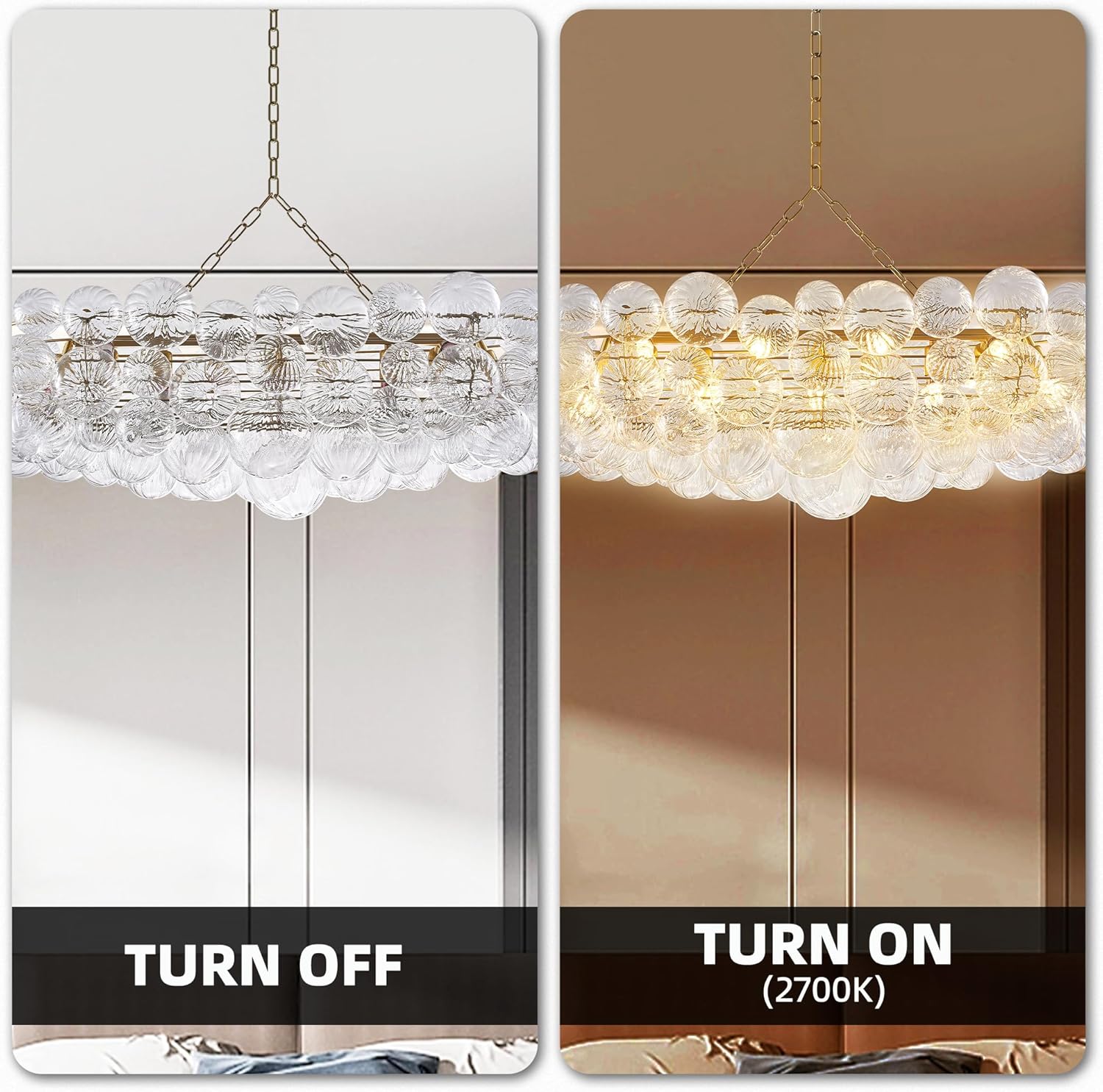 Nordic Bubble Ball Swirled Glass Chandelier, 36" Long Rectangular Chandeliers Island Light Fixture Gold and Clear Blown Glass Large Pendant Light Fixture for Bedroom Study Restaurant Dining Table