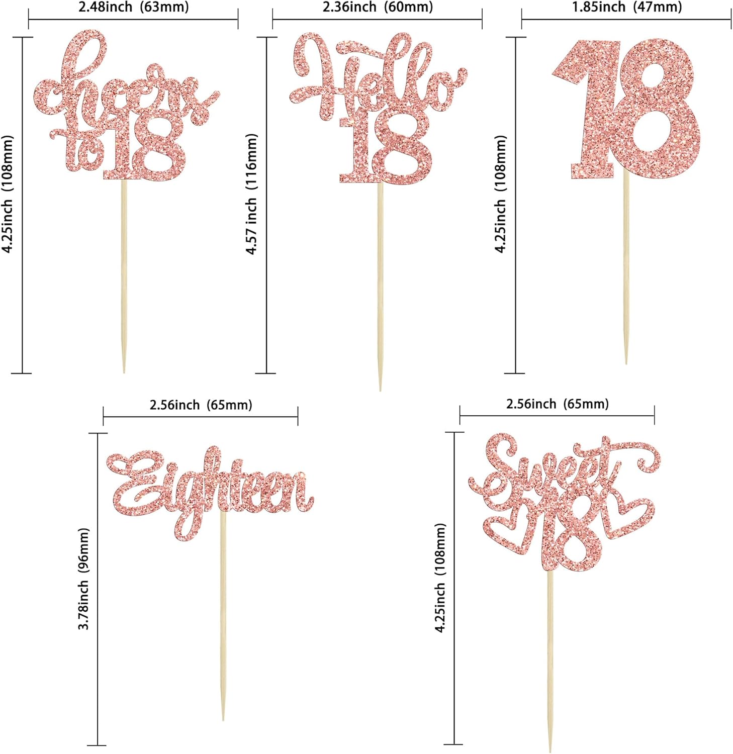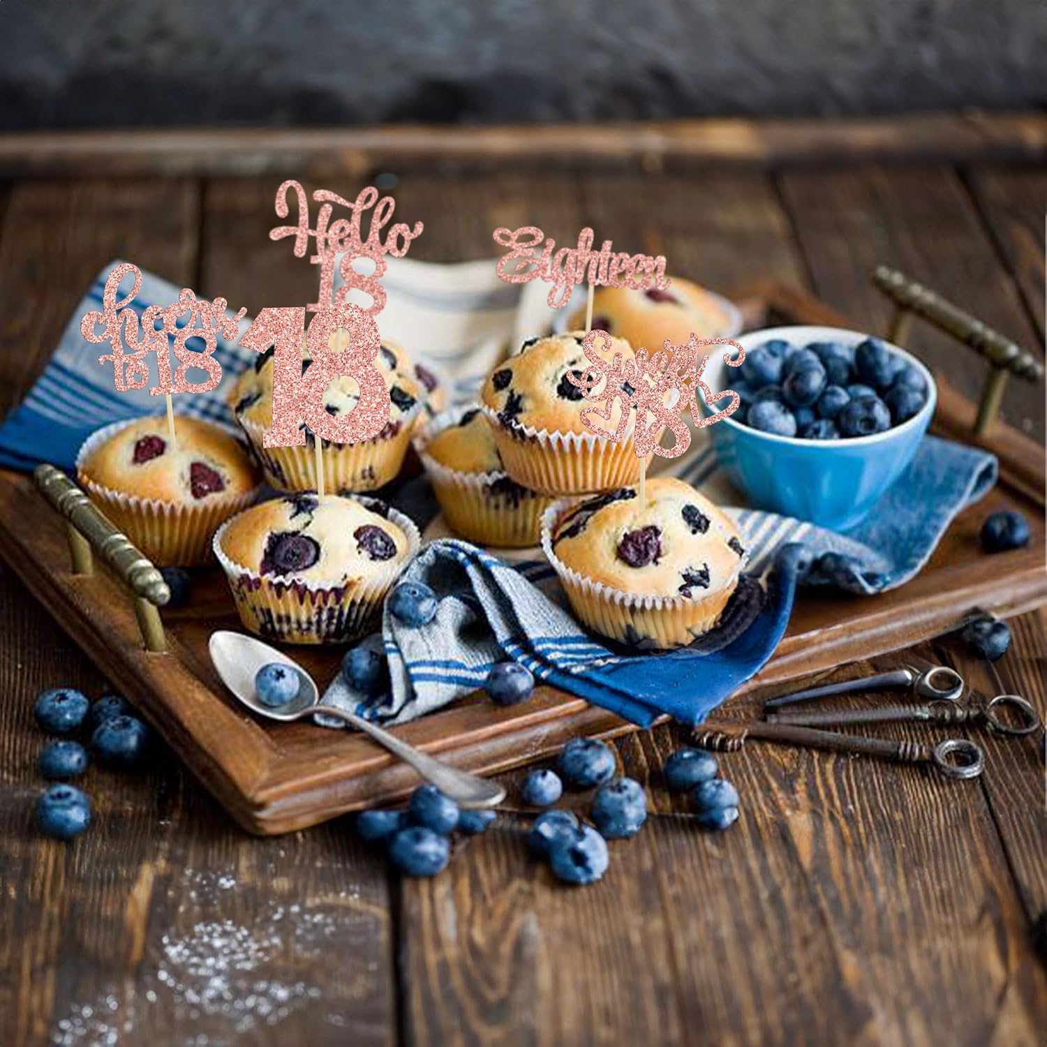 30Pcs18th Birthday Cupcake Toppers Eighteen Happy 18th Cupcake Picks Sweet 18 Cheers to 18 Cake Decorations for 18th Birthday Anniversary Party Supplies Rose Gold Glitter