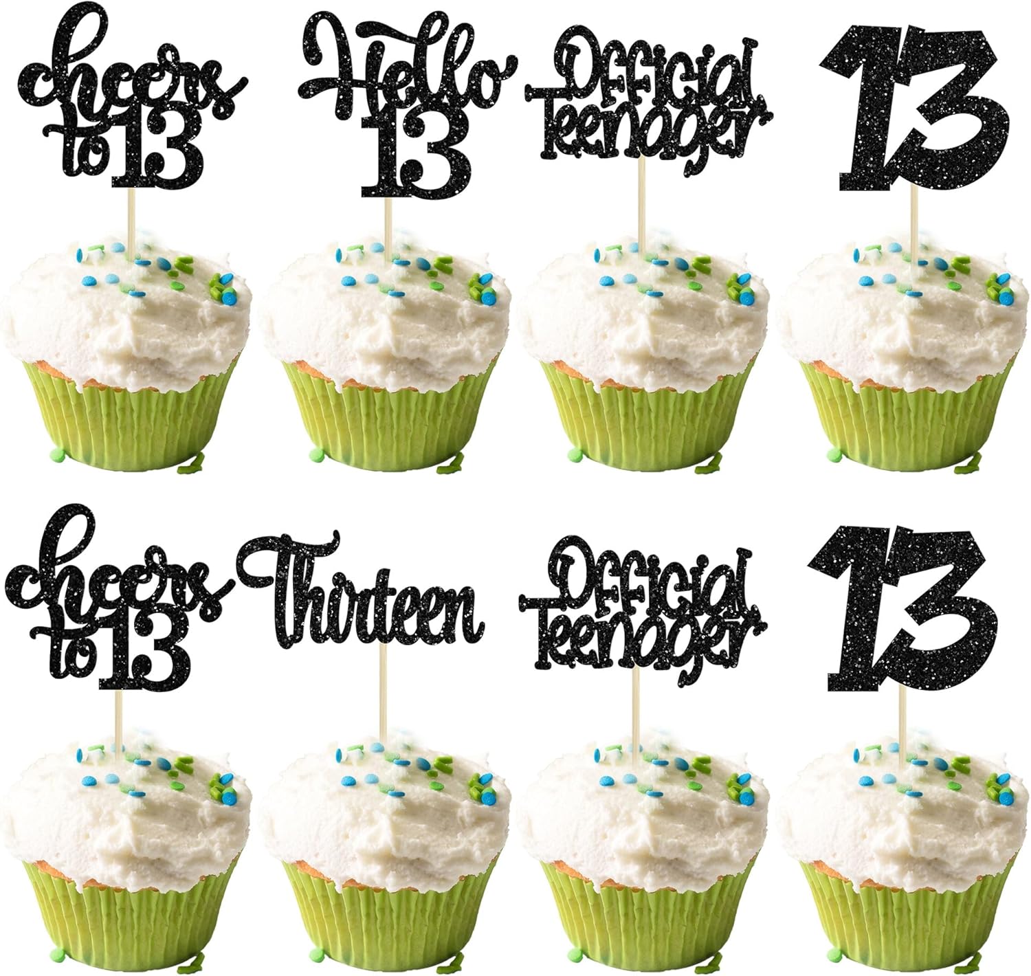 - -These Happy 13th Birthday Cupcake Toppers are so cute and good for happy 13th birthday theme party, cheers to 13 years theme party, 13 fabulous theme party, happy 13th birthday anniversary theme party cake decorations. They can make your cupcake more attractive and bring the fun to your party. You can also apply them for ice cream, fruits, cookies and other desserts.