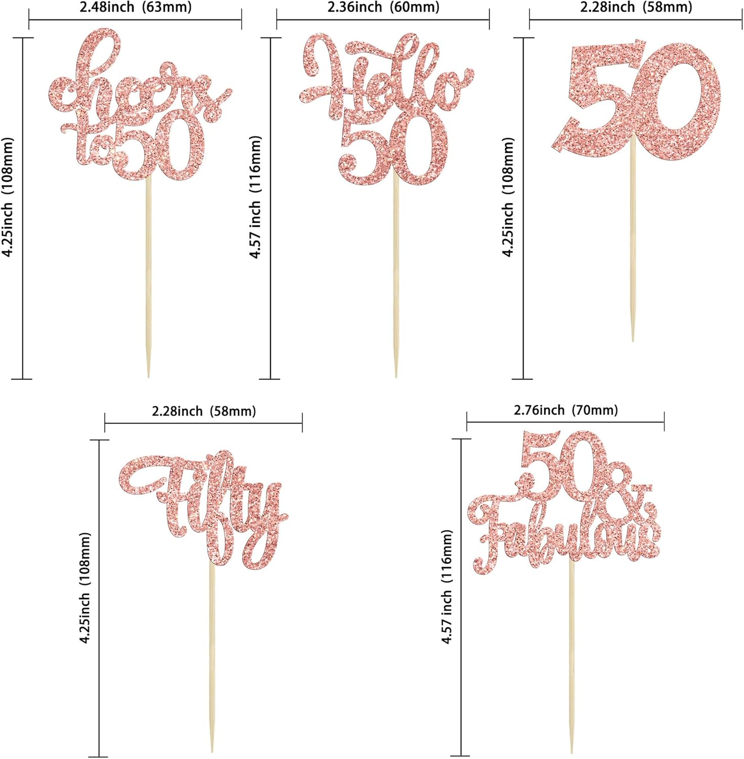- -These Happy 50th Birthday Cupcake Toppers are so cute and good for happy 50th birthday theme party, cheers to 50 years theme party, 50 fabulous theme party, happy 50th birthday anniversary theme party cake decorations. They can make your cupcake more attractive and bring the fun to your party. You can also apply them for ice cream, fruits, cookies and other desserts.