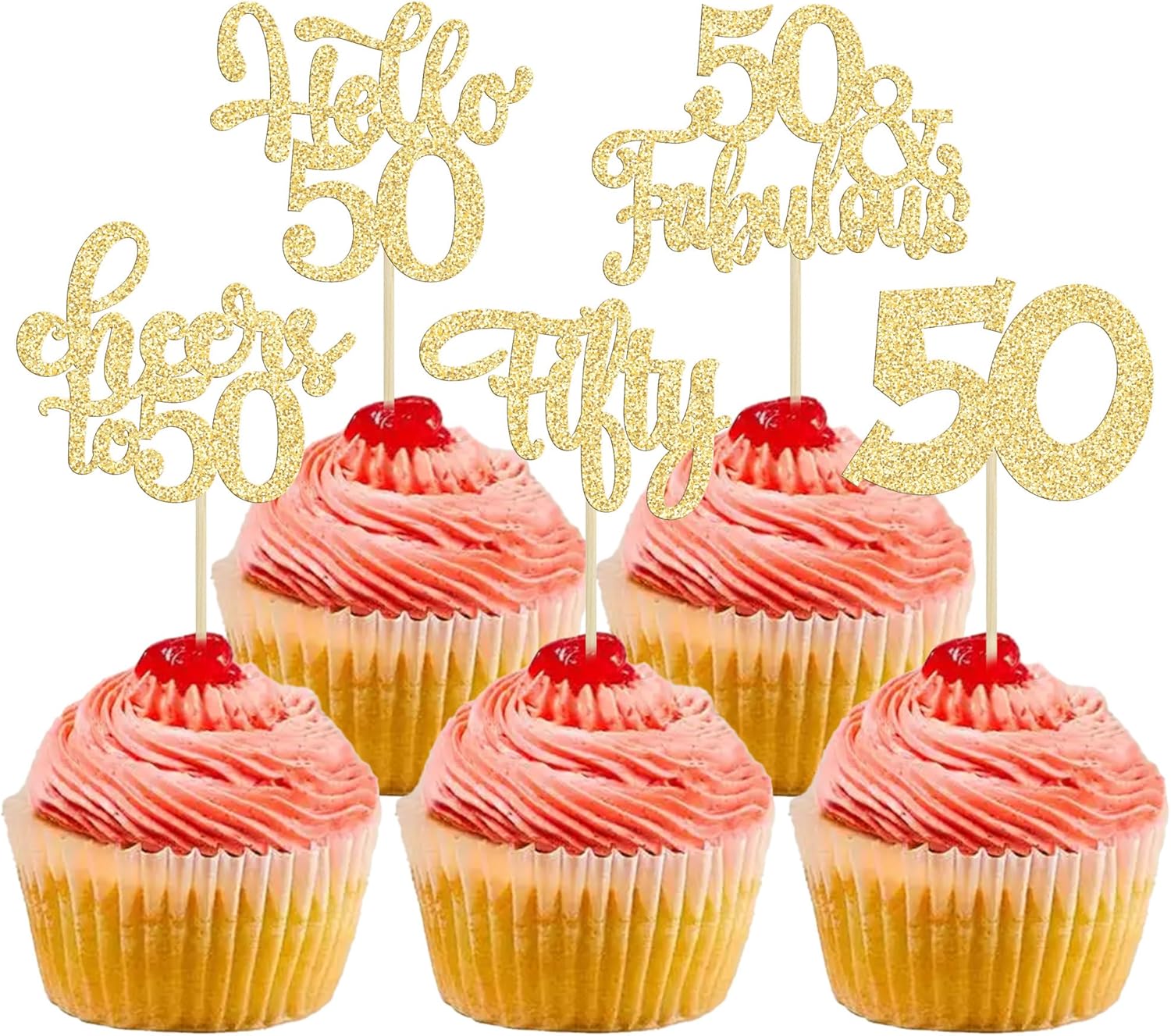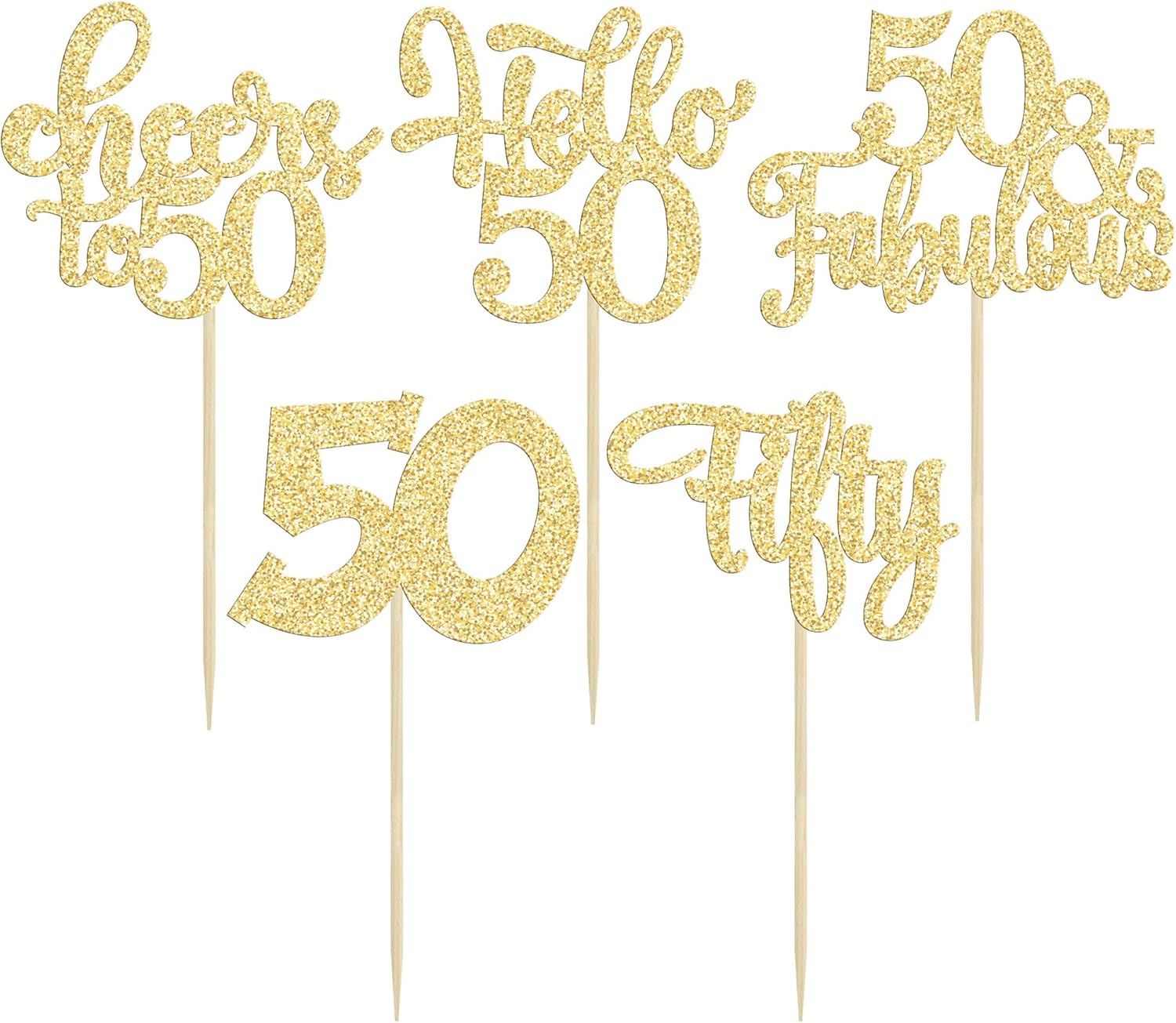 - -These Happy 50th Birthday Cupcake Toppers are so cute and good for happy 50th birthday theme party, cheers to 50 years theme party, 50 fabulous theme party, happy 50th birthday anniversary theme party cake decorations. They can make your cupcake more attractive and bring the fun to your party. You can also apply them for ice cream, fruits, cookies and other desserts.
