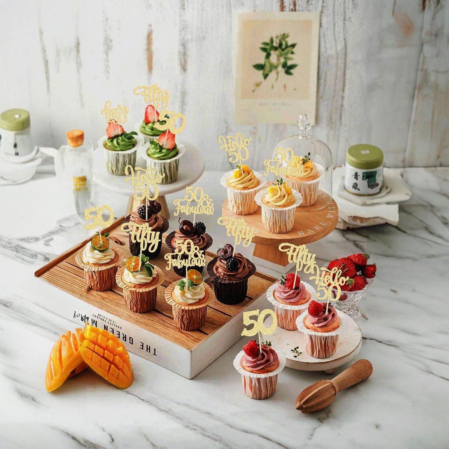 - -Premium Material: These Happy 50th Birthday Cupcake Toppers are made of high quality 300 gram card stock and food-grade toothpick, very safe to put them on cakes, cupcakes, ice cream, fruits, pie, dessert, cheese or any dish and food appetizer you want to decorate.
