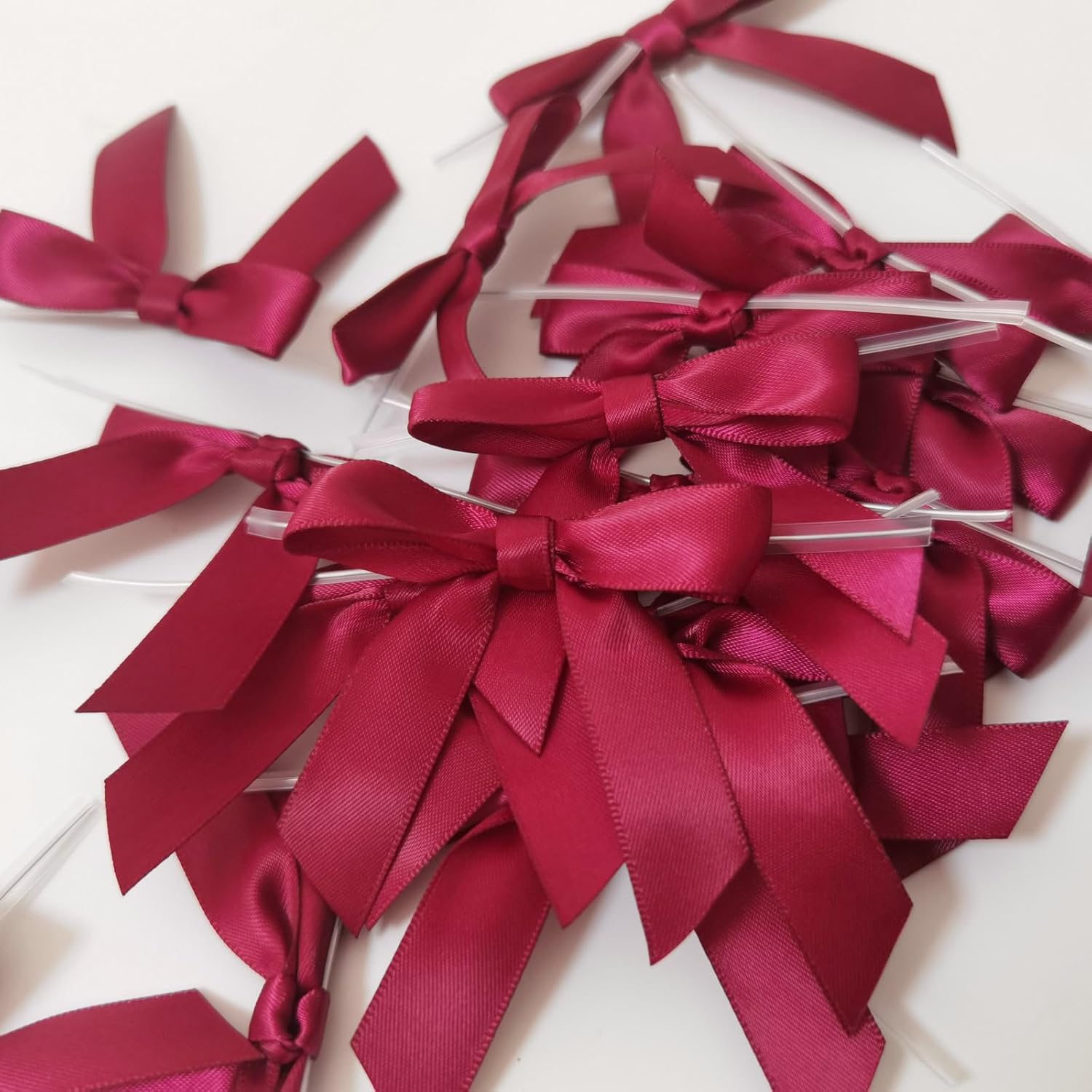 50pcs 2-1/2" Burgundy Satin Ribbon Bows with Twist Tie Bows for Christmas Gift Packing&Wrapping (Burgundy)