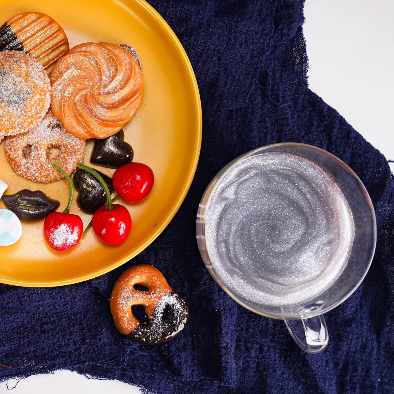 - 🌟【Use with Brews】Food-grade glitters are so fun and simple to use with brews. Add one pinch or two directly to your favorite beverage, mix it with cocktail syrups, juices, liqueurs, liquors, or spirits. Use a clear glass instead of opaque containers so that the liquid looks so cool, especially when you move it around in the glass with a stir. A tiny amount of dust can create a great visual spectacle, and clear liquids offer a great blank canvas for glitter to show off the best ability.